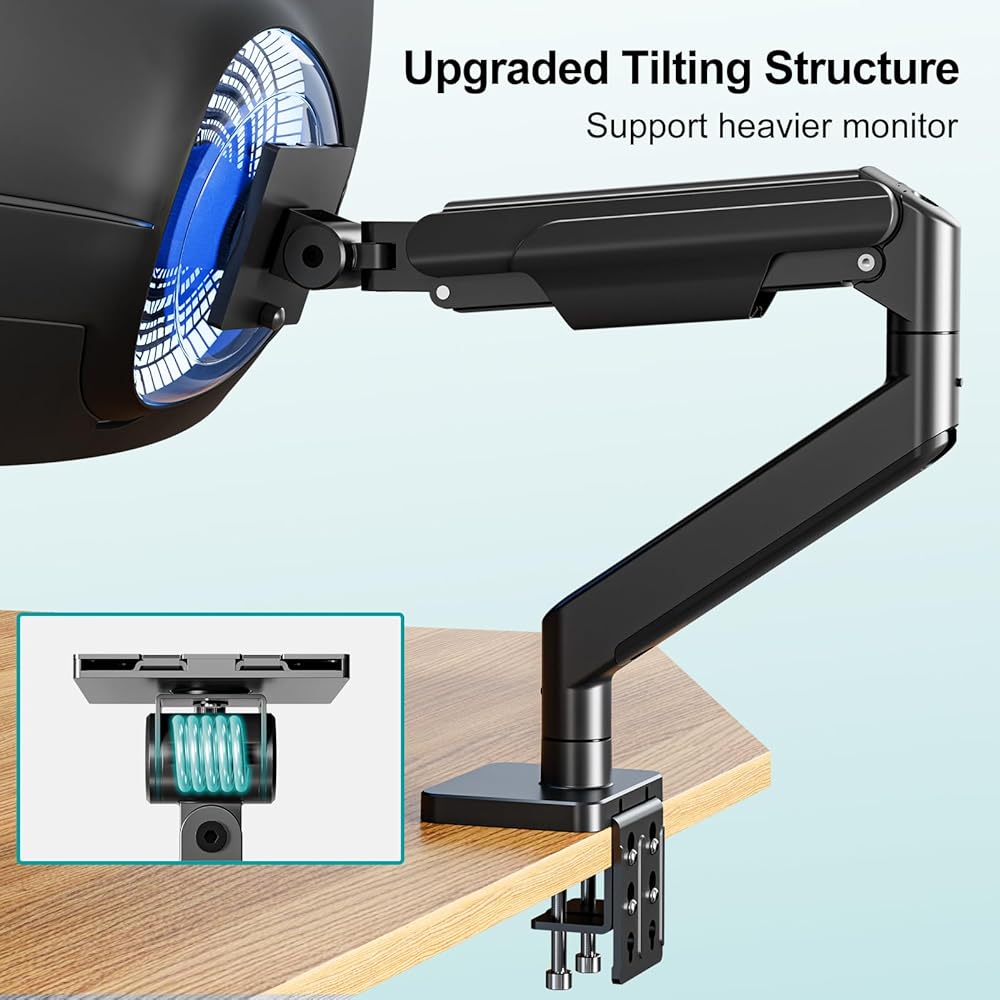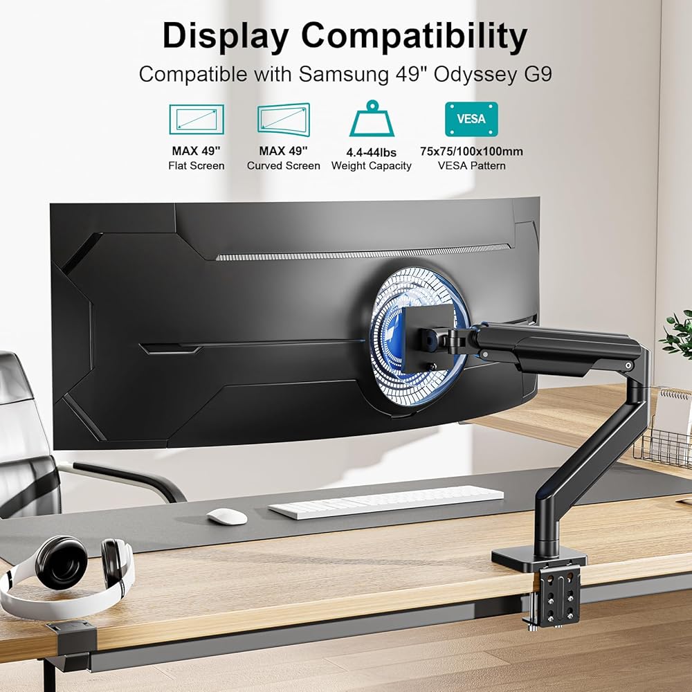 حامل شاشة واحد ممتاز من MOUNT PRO لشاشات فائقة العرض مقاس 49 بوصة و44 رطلًا بحد أقصى، ذراع شاشة عالي التحمل يناسب Samsung Odyssey G9 وLG، ارتفاع هوائي قابل للتعديل، حامل مكتب للشاشة، حامل VESA
