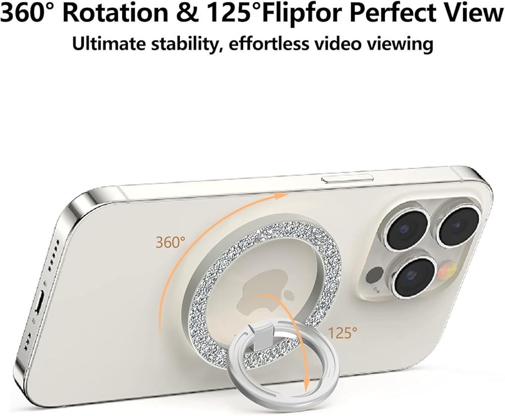 • 【دوران 360 درجة】يمكن قلب حامل حلقة الهاتف المغناطيسي حتى 125 درجة وتدويره 360 درجة من أجل حمل مريح أو أوضاع رؤية مختلفة عند وضعه على الطاولة. كحلقة وحامل لمقبض الهاتف، من المريح تشغيل الهاتف بيد واحدة، وإمساك الهاتف بإحكام وتقليل خطر السقوط العرضي. سواء كنت تحمل هاتفك أو تلتقط صور سيلفي أثناء التسوق، فالأمر سهل.