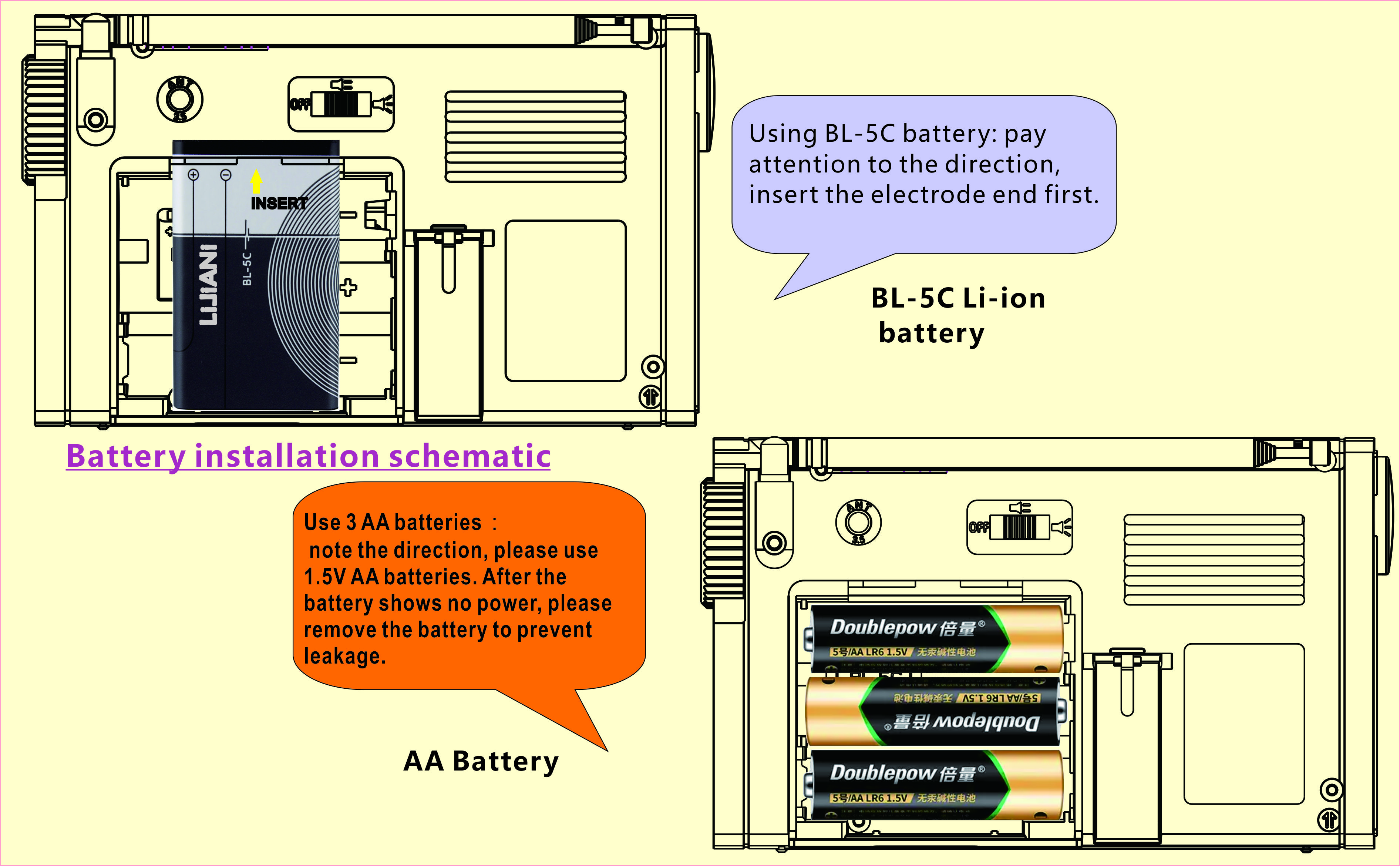 ⚡خيارات طاقة متعددة: تعمل ببطاريات 3*AA أو BL-5C(1000mah)، أو مدخل من النوع C للشحن المريح.
