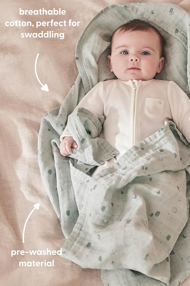 مغسول مسبقًا لمزيد من النعومة: تم غسل قماش التجشؤ الموسلين مسبقًا، مما يعزز نعومته ويضمن بقاءه لطيفًا على بشرة طفلك. وتساعد عملية الغسيل المسبق أيضًا على تقليل الانكماش، مما يضمن احتفاظه بشكله ومتانته.