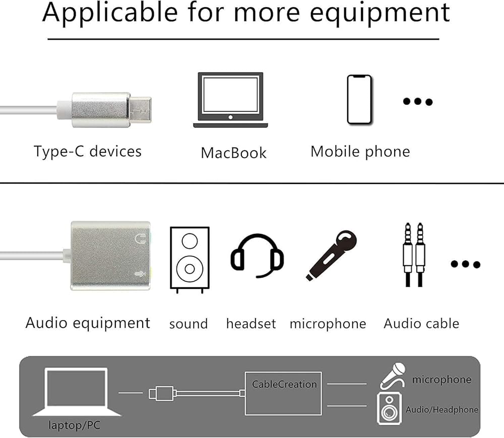 بطاقة صوت خارجية USB C من EZONEDEAL، محول بطاقة صوت 7.1 قناة، بطاقة صوت ستيريو خارجية من النوع C مع مقبس سماعة رأس 3.5 مم ومقبس ميكروفون للكمبيوتر المحمول McBook Pro PC