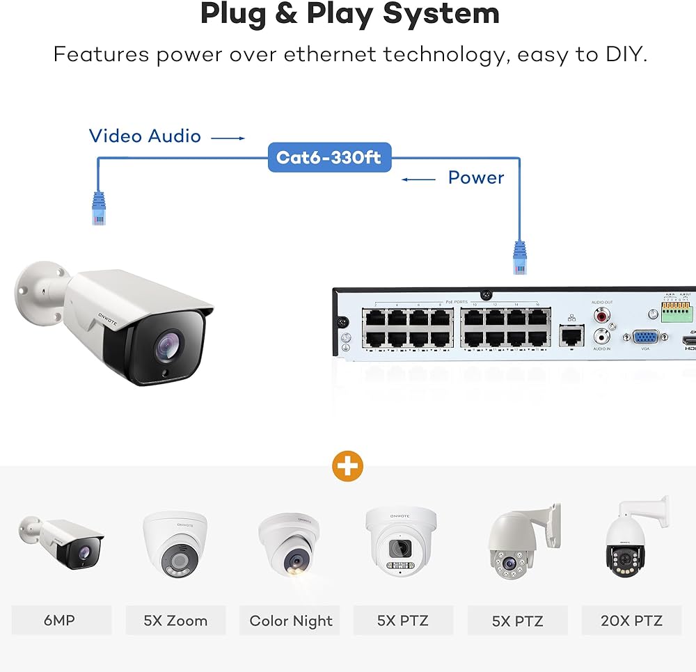 الطاقة عبر إيثرنت، التوصيل والتشغيل. يوفر PoE NVR الطاقة للكاميرات عبر كابلات إيثرنت.