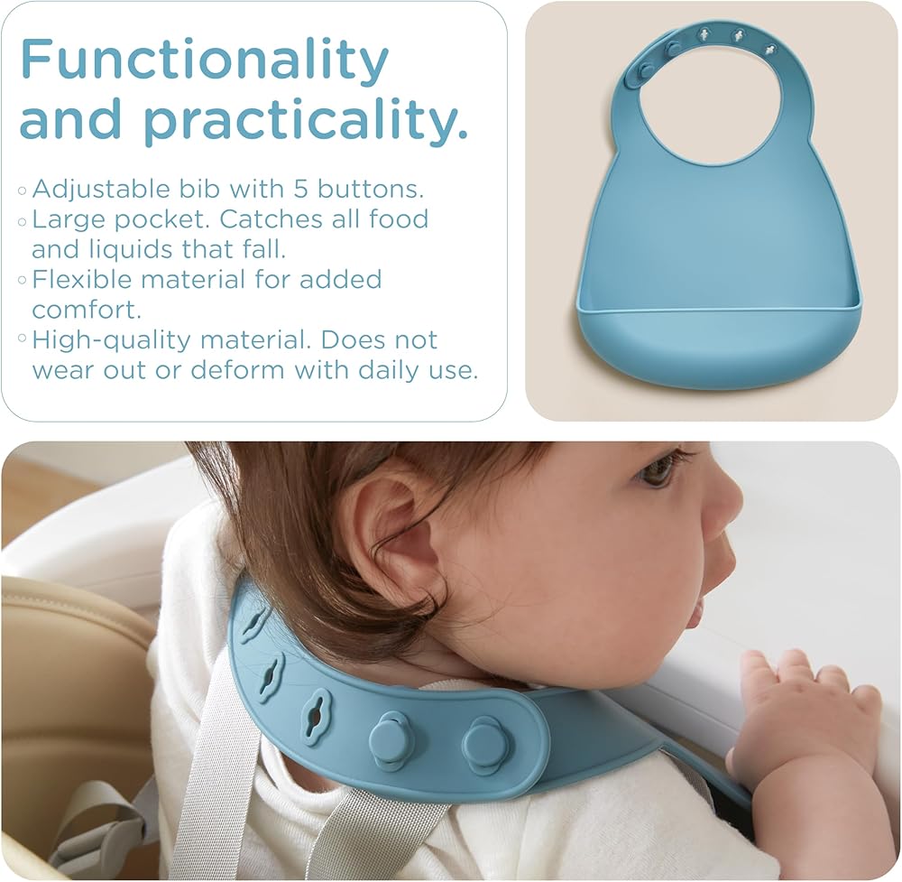 【سيليكون آمن غذائيًا بنسبة 100%】- تضمن مجموعة التغذية المصنوعة من السيليكون سلامة طفلك من خلال كونها خالية تمامًا من مادة BPA وPVC. تصميم ناعم وسلس، يزيل الحواف الحادة لمنع أي نتوءات أو خدوش محتملة.