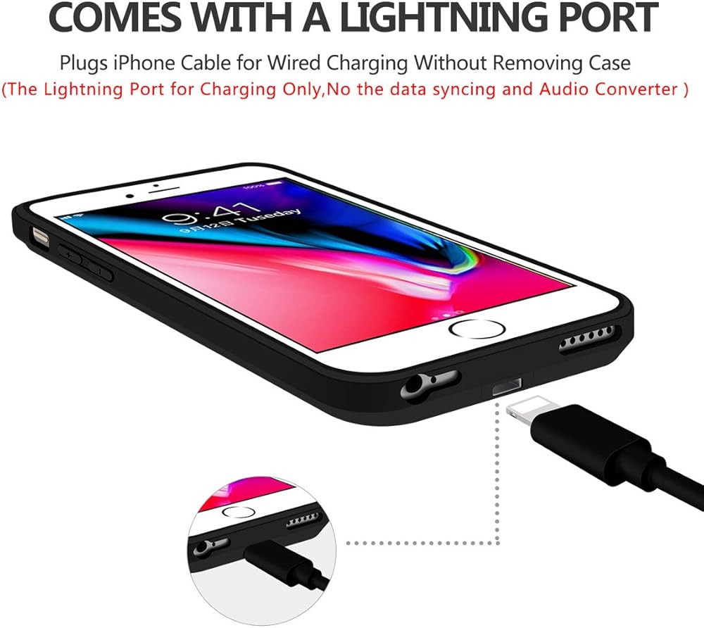 2.Cable charging function- Comes with an iPhone charging port,when you wan to charge your phone by a cable,simply plug for wired charging ,without removing the case!