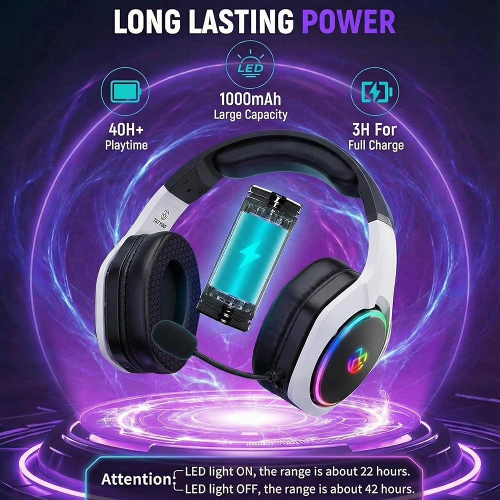 ⚡ New Technology, New Experience:The widest compatibility than any other gaming headsets: Bluetooth & 2.4GHz wireless tech, Both USB & Type C connector,which means suit for almost all gaming devices expect XBOX. When bluetooth for phone, 2.4GHz for game, we can freely call when gaming.