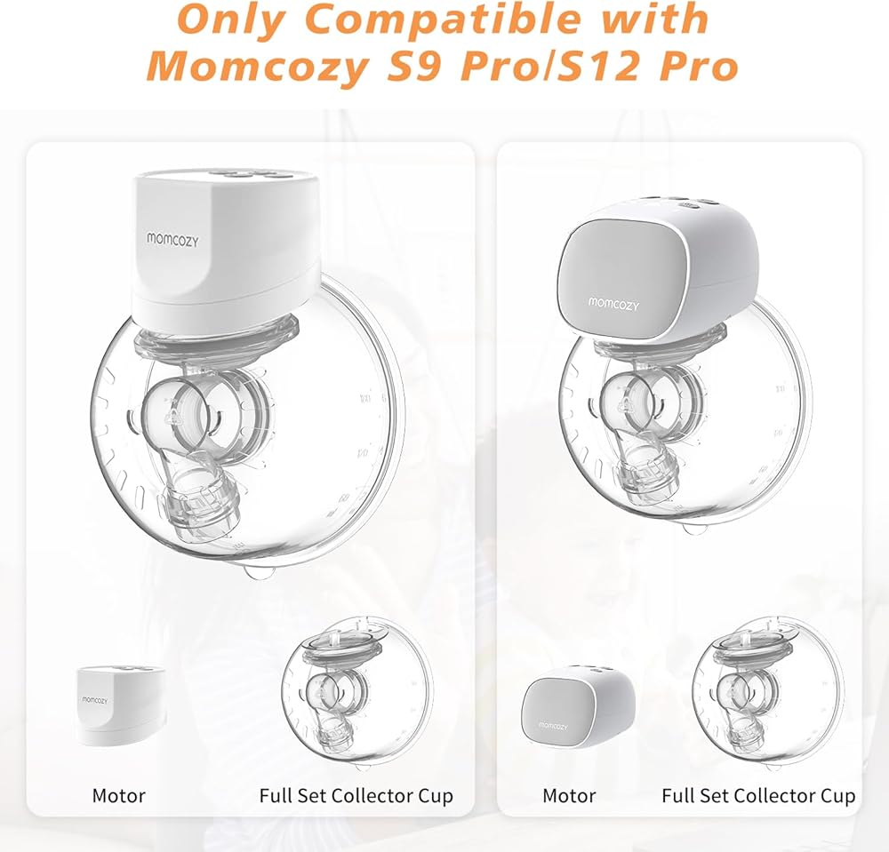 The wearable breast pump milk collector accessories are suitable for use with Momcozy S9 Pro/S12 Pro Hands-Free Breast Pump.NOT for S9/S12 and other breastpumps.