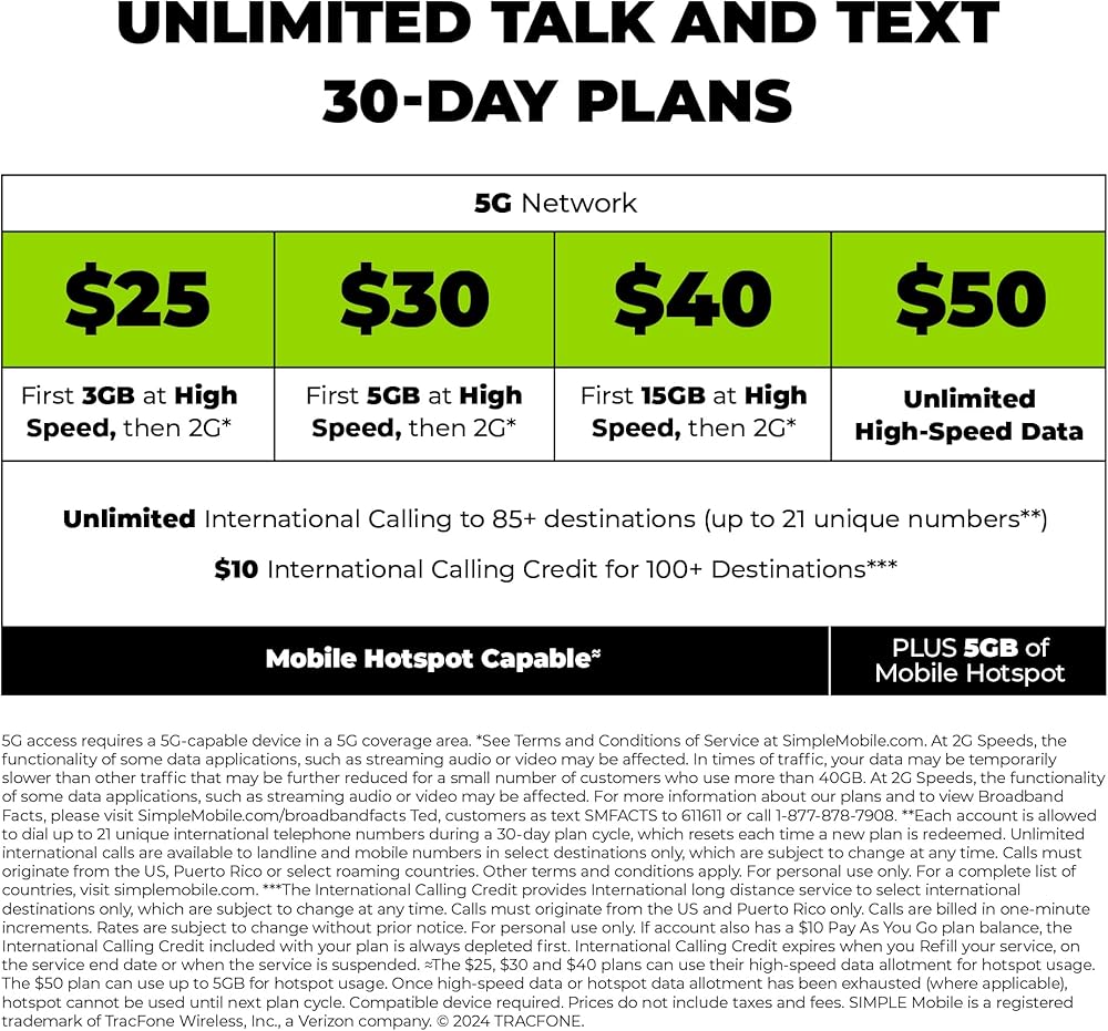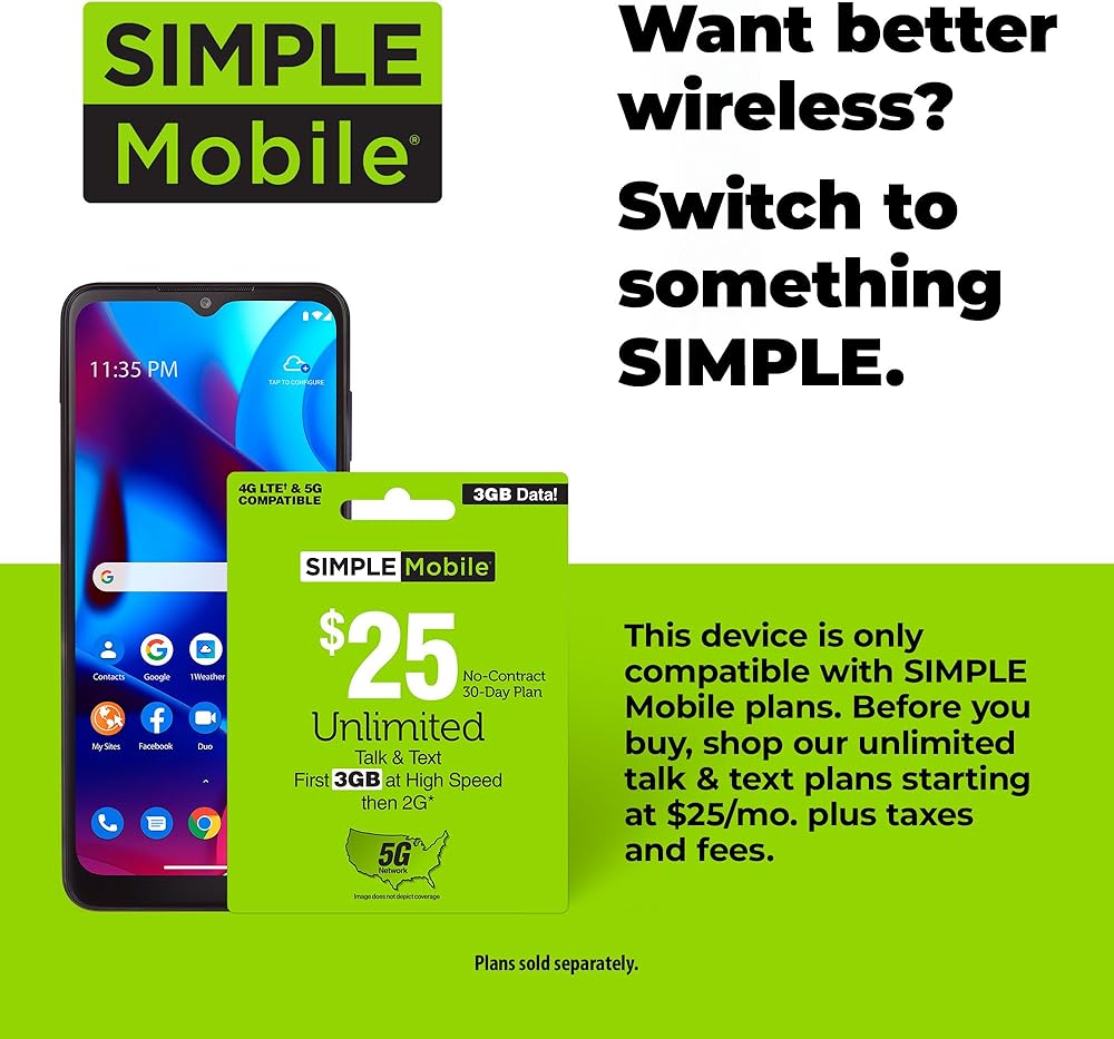 To activate this device, a SIMPLE Mobile plan is required. To find the SIMPLE Mobile Plans available to purchase, please go to our SM - Amazon Brand Page linked below the product title.