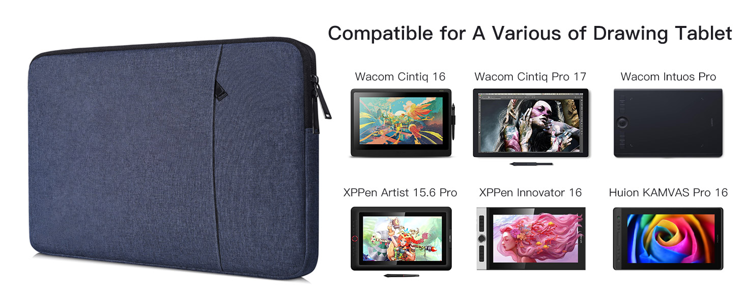 • 【توافق ممتد】 - حافظة الكمبيوتر اللوحي لرسم الرسومات تناسب معظم شاشات الرسم الرسومية المحمولة، Wacom Cintiq 16/Cintiq Pro 16 17/ Intuos Pro/Intuos Pro Large PTH860 & XPPen Artist 16 Gen 2 & Huion KAMVAS GT-156HDV2 & GAOMON PD1560 PD1561 إلخ لوح رسم محمول.