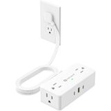 قطاع طاقة واقي من زيادة التيار، سلك تمديد مسطح بطول 5 أقدام مع 4 منافذ و3 منافذ USB (2 USB C)، شريط طاقة مسطح مع حماية 900 جول، مناسب لغرفة النوم في المنزل والمكتب، أبيض