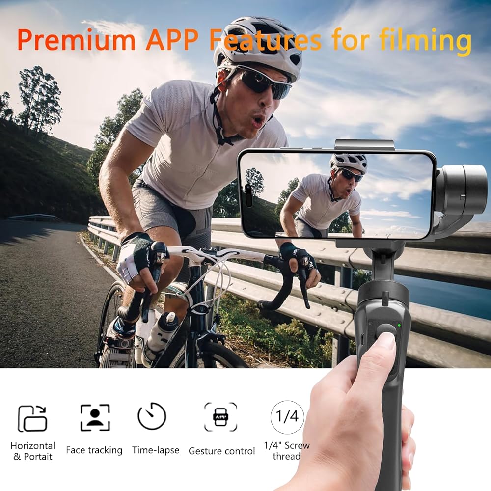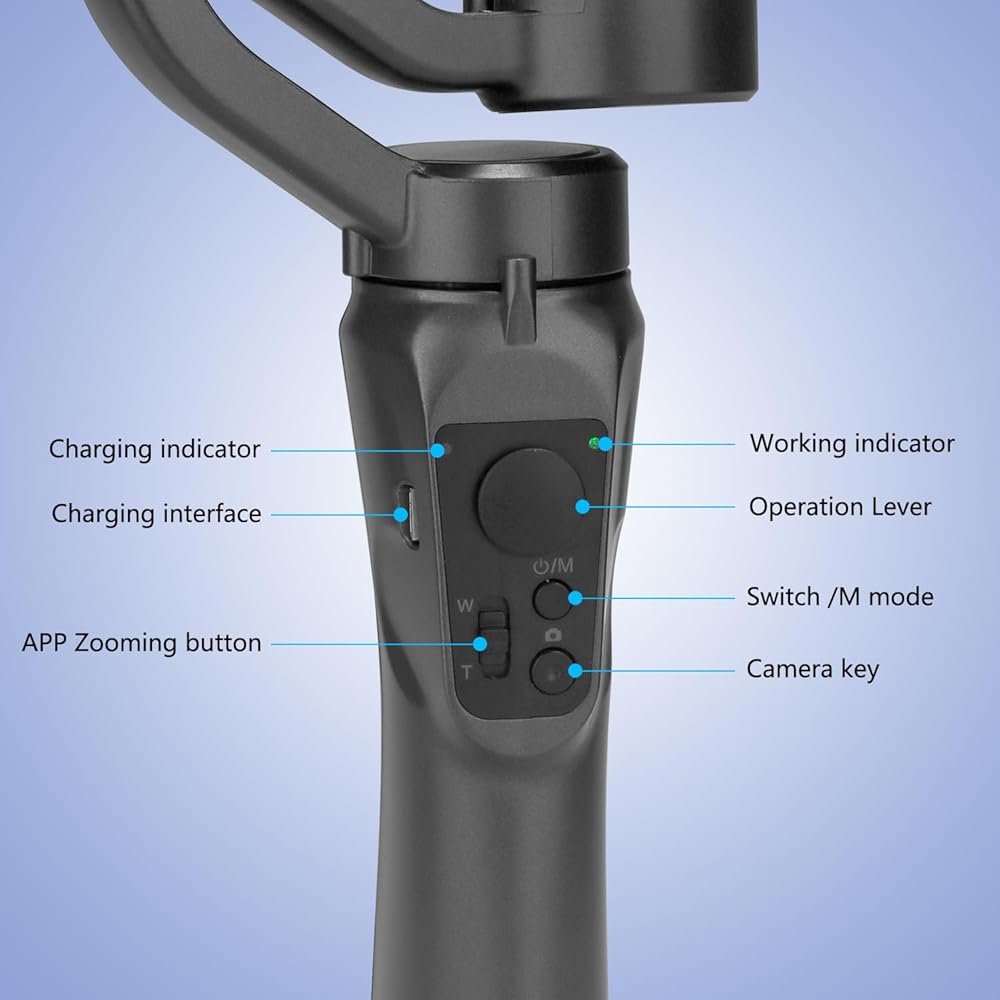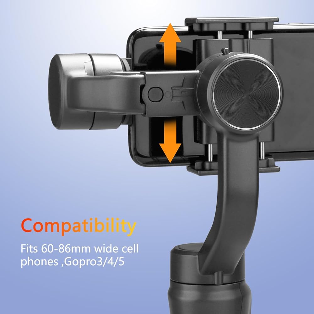 【توافق واسع】يتمتع مثبت Gimbal الذكي الذي تم ترقيته حديثًا بعمر بطارية يصل إلى 8 ساعات لتلبية احتياجات التصوير في الهواء الطلق. يتوافق مثبت الهاتف الذكي هذا بشكل مثالي مع الهواتف الذكية التي تعمل بنظام iOS وAndroid حتى 6 بوصات، وGopro3/4/5. (ملاحظة: استخدم المعدن العاري، وقم بتثبيت الهاتف قبل التشغيل)