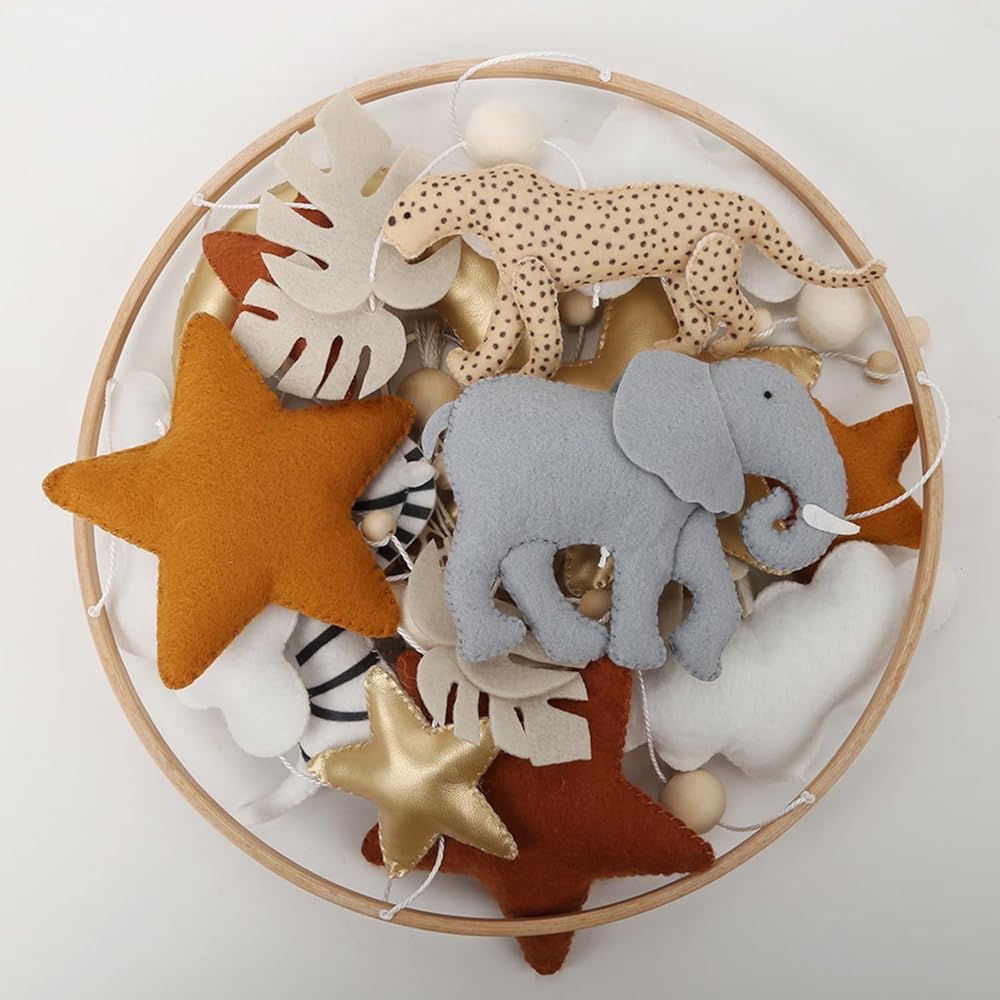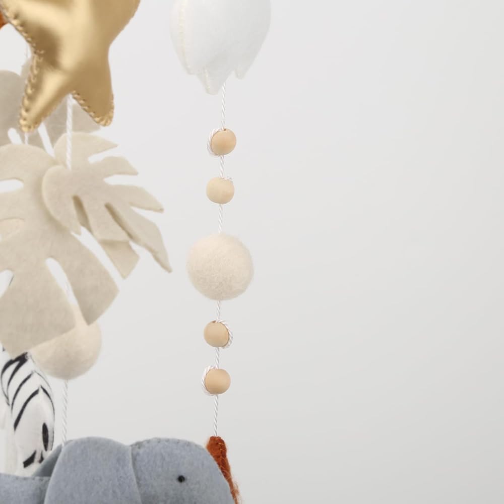 NEW DESIGN! Help create a loving nursery with this gender neutral safari mobile for crib design. A beautiful jungle mobile with clouds and stars to go with safari or jungle themes and perfectly suited to neutral theme nursery and boho nursery theme. A baby mobile for crib boys or girls in a lovely neutral shades and vintage neutral design. Made with non toxic felt and hypoallergenic stuffing, designed by our family for your family . Hang from a variety of crib mobile arms and music boxes (not included) but please secure out of reach of children.