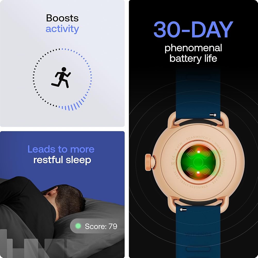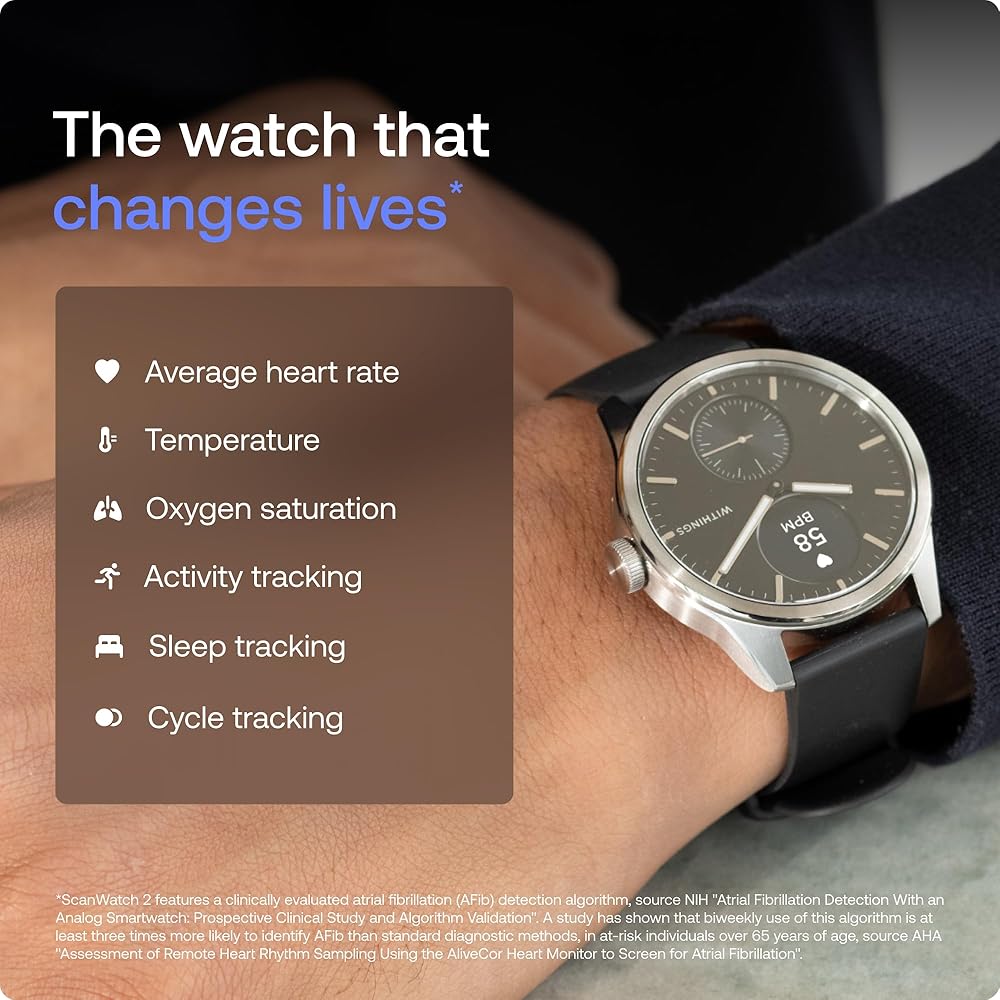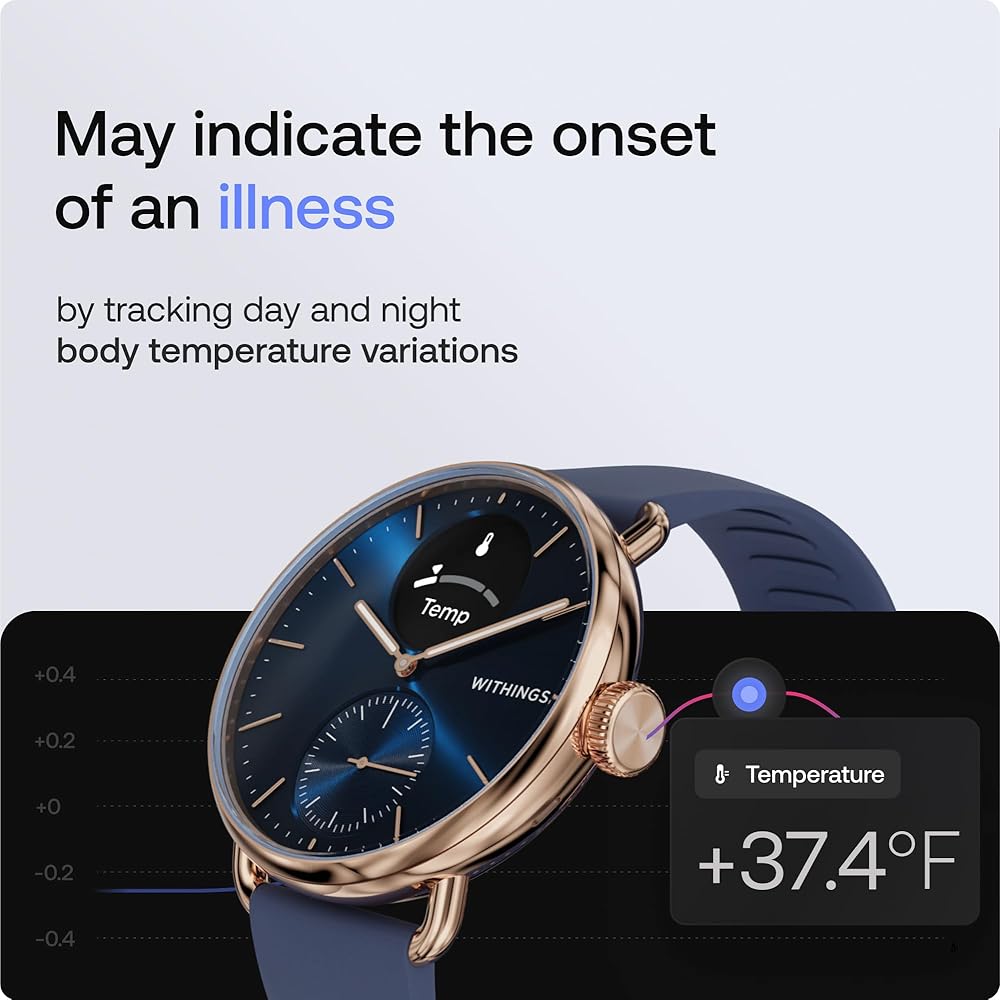 A design hybrid smartwatch with proactive health tracking. Nested in a high-end watch, state-of-the-art medical technology has been carefully selected to create the most health-oriented watch ever offered to the public.