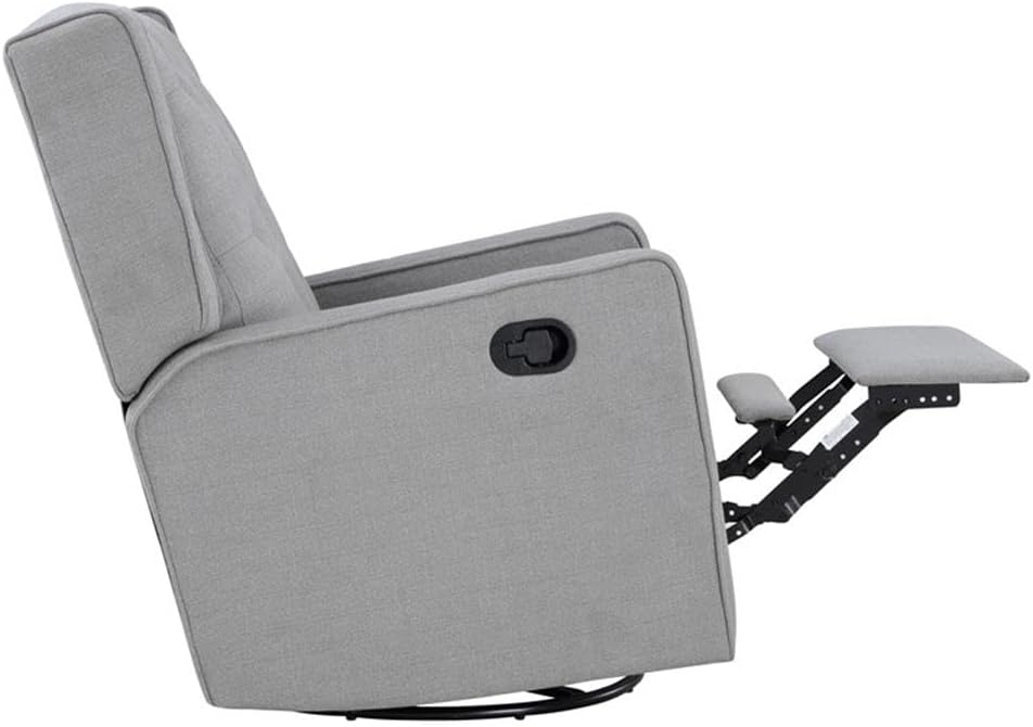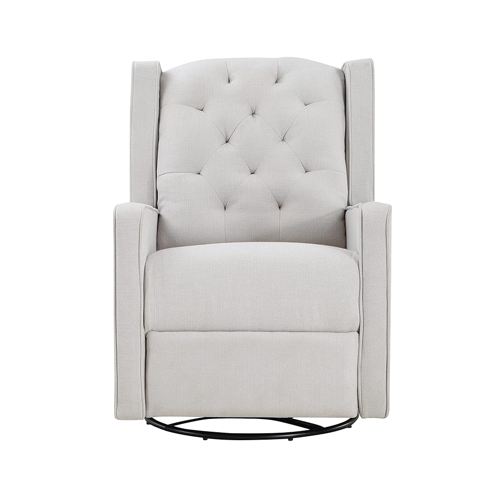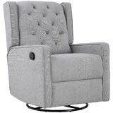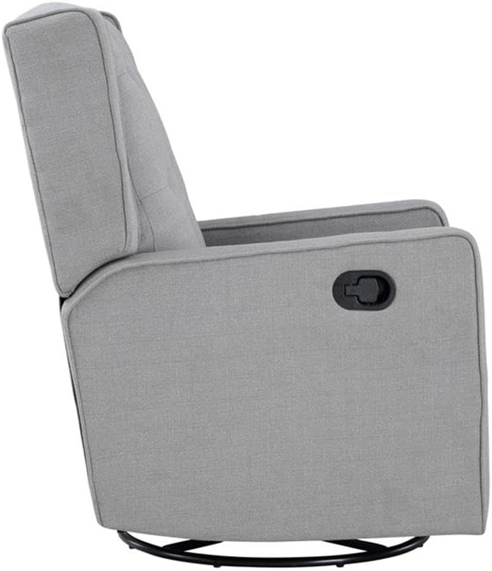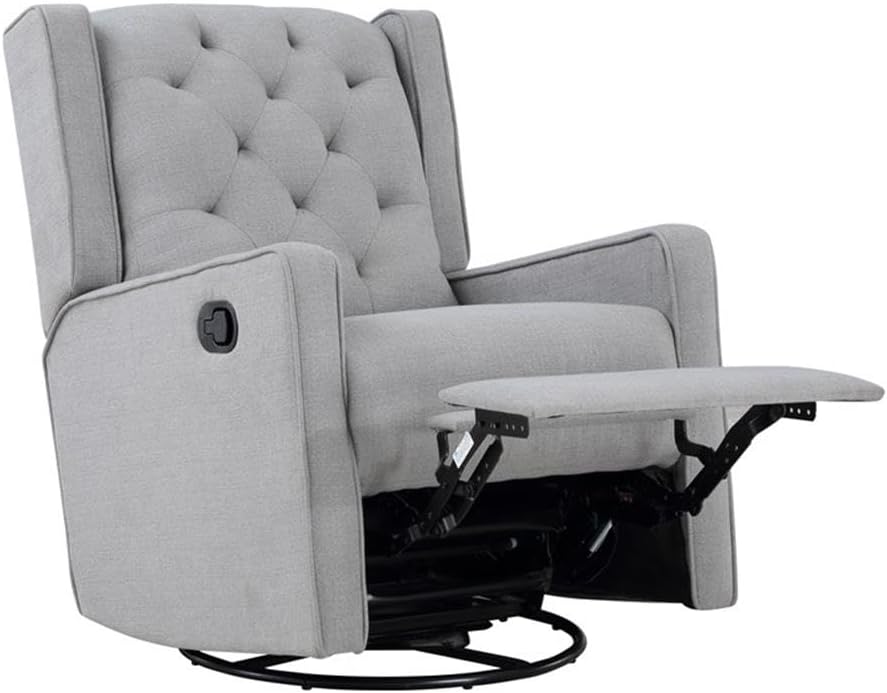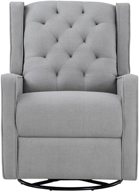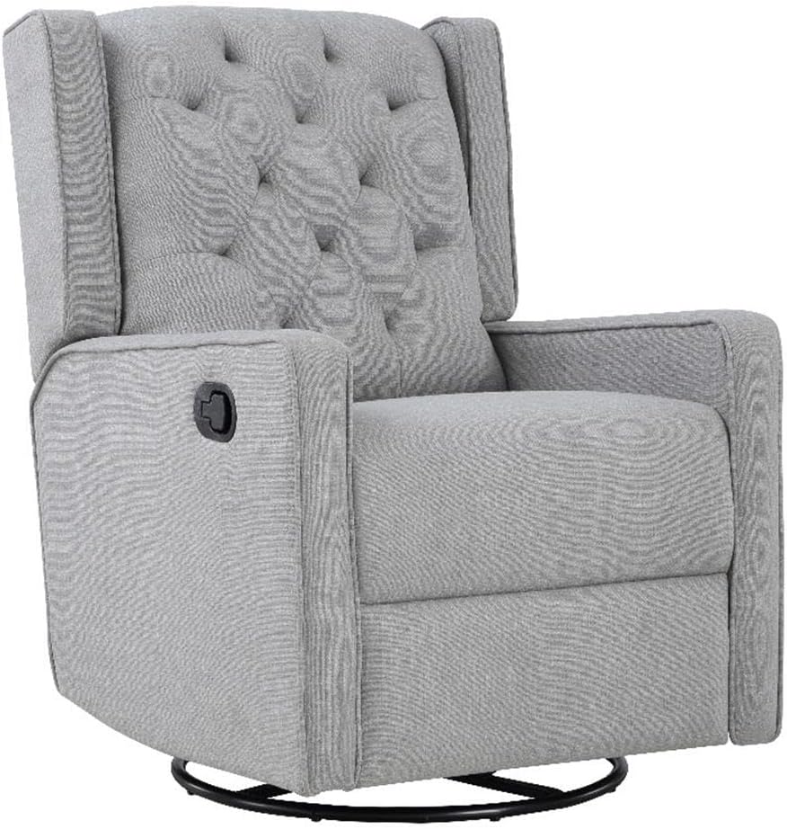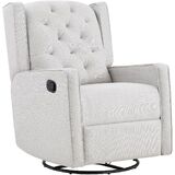The Bryton swivel gliding recliner is high on style with the smartly tufted back cushion and softly rounded wingback design. 360 degree swivel motion offers ease of use and ability to place in a smaller space. Offering rich, easy to clean fabrics and simple recline mech is especially important for your nursery. With the Bryton's soft quiet glide, you and your baby will rest easy.