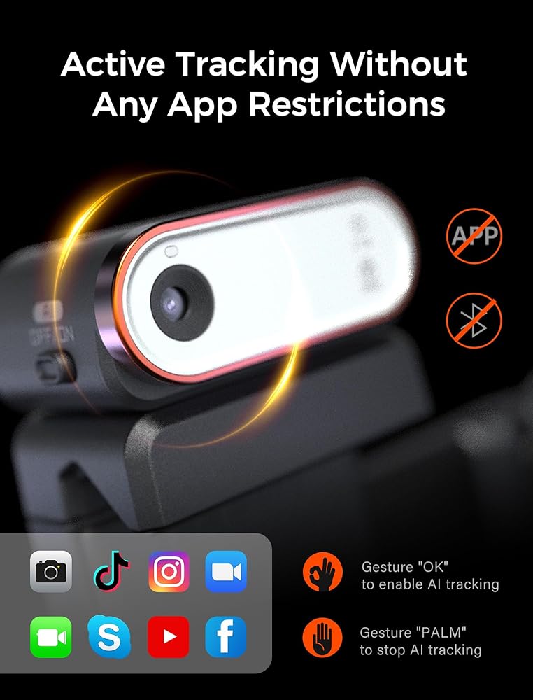 [Gesture Control] To enhance your video shooting convenience, the AI active tracker incorporates gesture control, freeing your hands. Simply make the "OK" gesture to activate tracking or use the "PALM" gesture to pause it. (Note: The recommended range for gestures is 1.6-4.9 feet or 0.5-1.5 meters).
