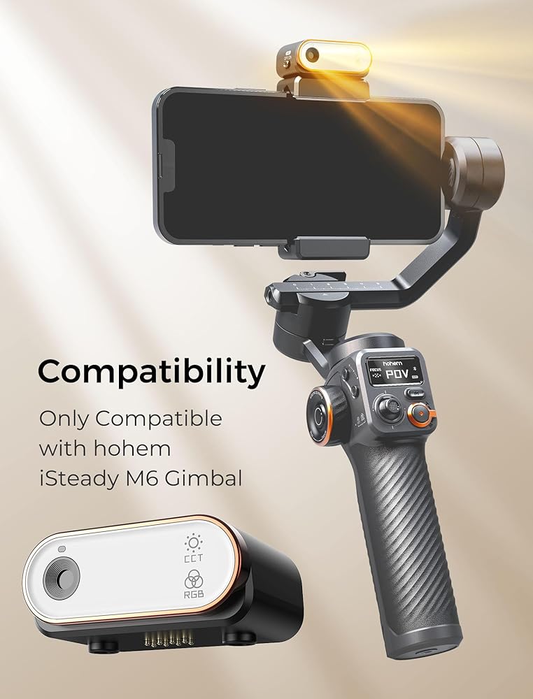 جهاز تعقب نشط من hohem AI مع ضوء ملء CCT مغناطيسي، مستشعر رؤية AI لا حاجة إلى قيود البلوتوث أو التطبيق، التحكم في الإيماءات، متوافق مع مثبت iSteady M6 MT2