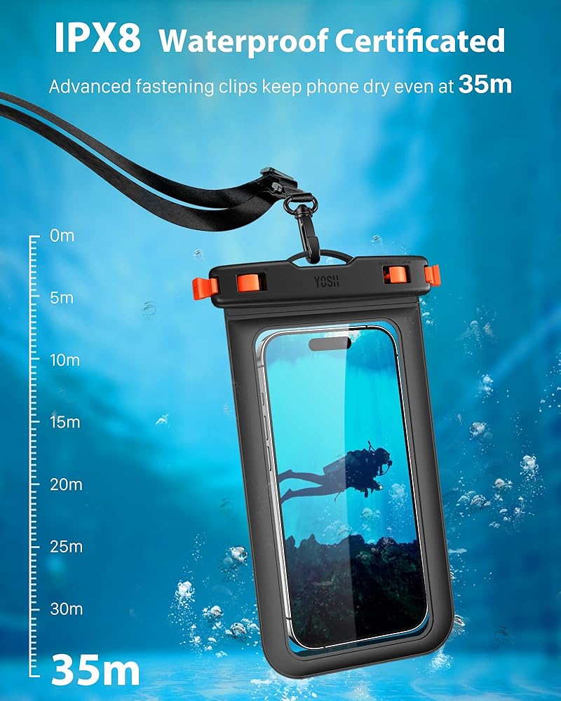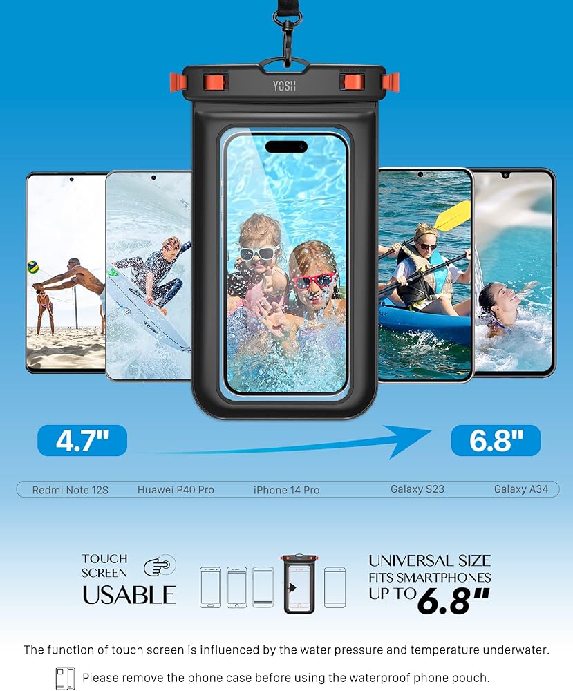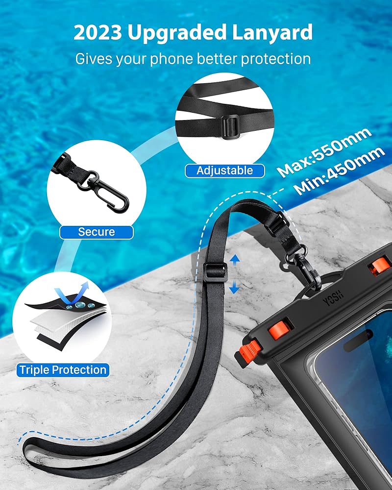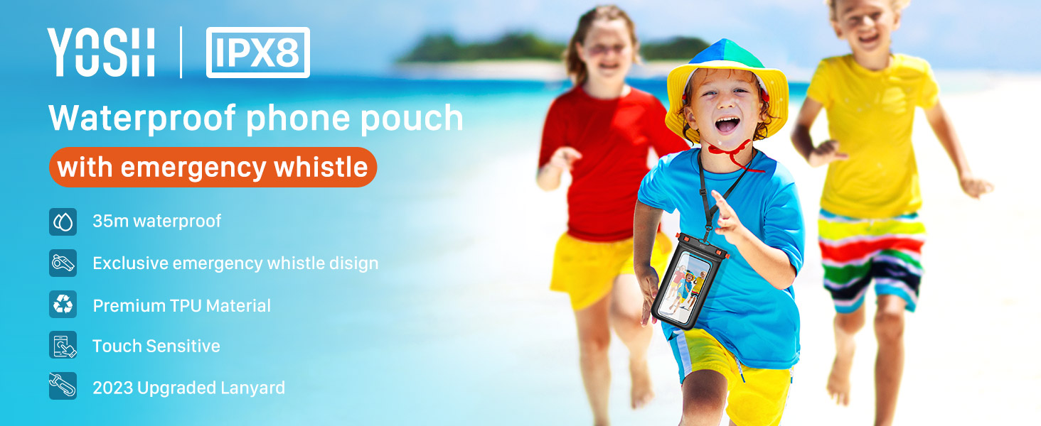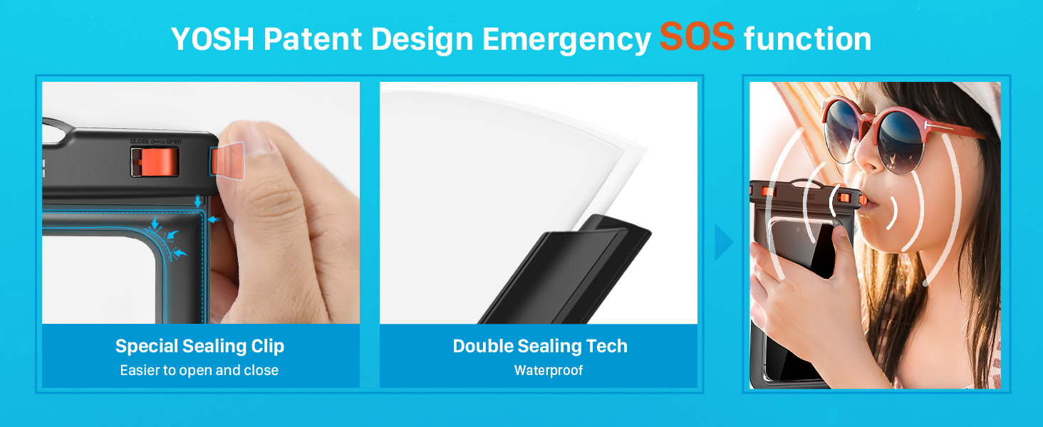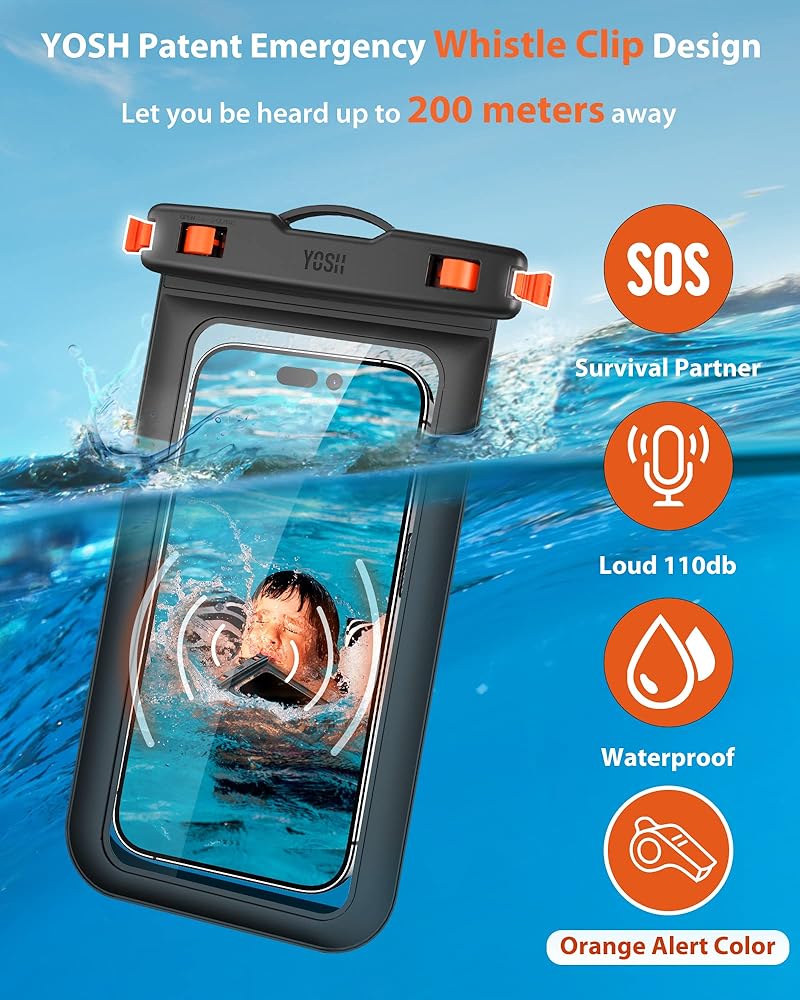 🆘[وظيفة صفارة الطوارئ SOS] تحول حقيبة الهاتف المقاومة للماء YOSH إلى شريك البقاء على قيد الحياة! حافظة مقاومة للماء لعائلتك، وخاصة طفلك! تضيف حافظة الهاتف YOSH 2023 الجديدة تحت الماء صفارة بقاء عالية وخفيفة وسهلة العثور عليها، باللون البرتقالي اللامع الذي يرمز إلى حالة الطوارئ ويعمل حتى في الظروف الرطبة. في حالة الطوارئ، يمكن للطفل أن يطلق صفارة لطلب المساعدة. مثالية لرحلات العطلات بين الوالدين والطفل، والسباحة، والبقاء على الماء، وركوب الأمواج، وفعاليات الرياضات المائية