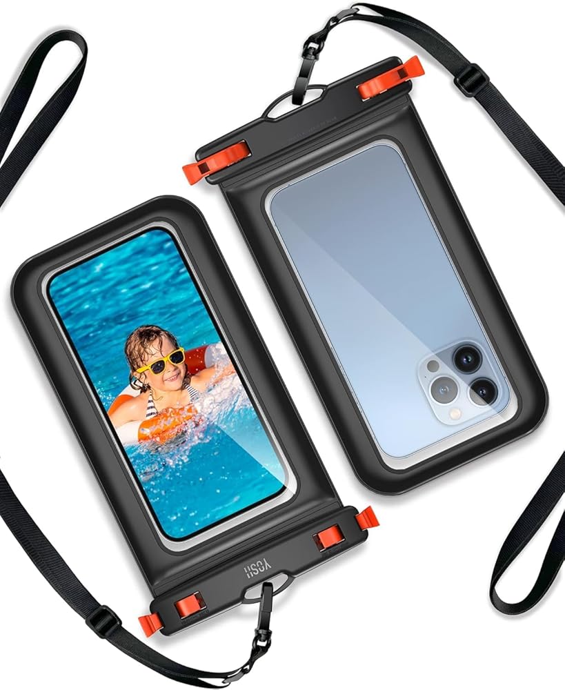 حافظة هاتف مقاومة للماء من YOSH 2024، وظيفة صفارة الطوارئ، حقيبة هاتف تحت الماء IPX8 للسباحة وحبل قابل للتعديل لهاتف iPhone 15 14 13 12 11 Pro Max Samsung S23 S22 حتى 6.8 بوصة، عبوتان باللون الأسود