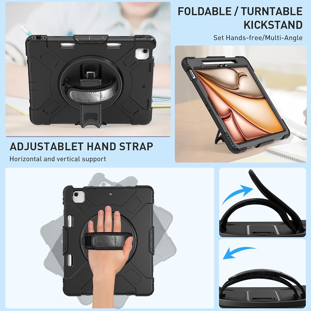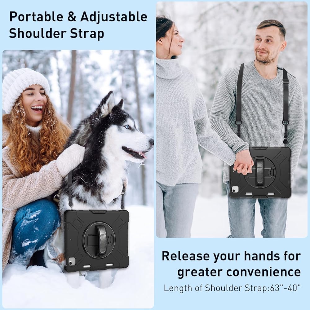 [حزام الكتف واليد] ارفع تجربة iPad الخاصة بك مع حافظة iPad Air 11 بوصة التي تتميز بحزام كتف قابل للفصل وحزام يد. يسمح حزام الكتف القابل للإزالة بالاستخدام المريح في الهواء الطلق، مما يضمن لك إمكانية حمل جهاز iPad الخاص بك أثناء التنقل دون القلق بشأن السقوط، وتحرير يديك للقيام بمهام أخرى. يوفر حزام اليد قبضة آمنة، ويمنع الانزلاق العرضي أثناء حمل جهازك. احصل على أقصى قدر من الراحة عند استخدام جهاز iPad الخاص بك مع هذه الحافظة متعددة الاستخدامات.