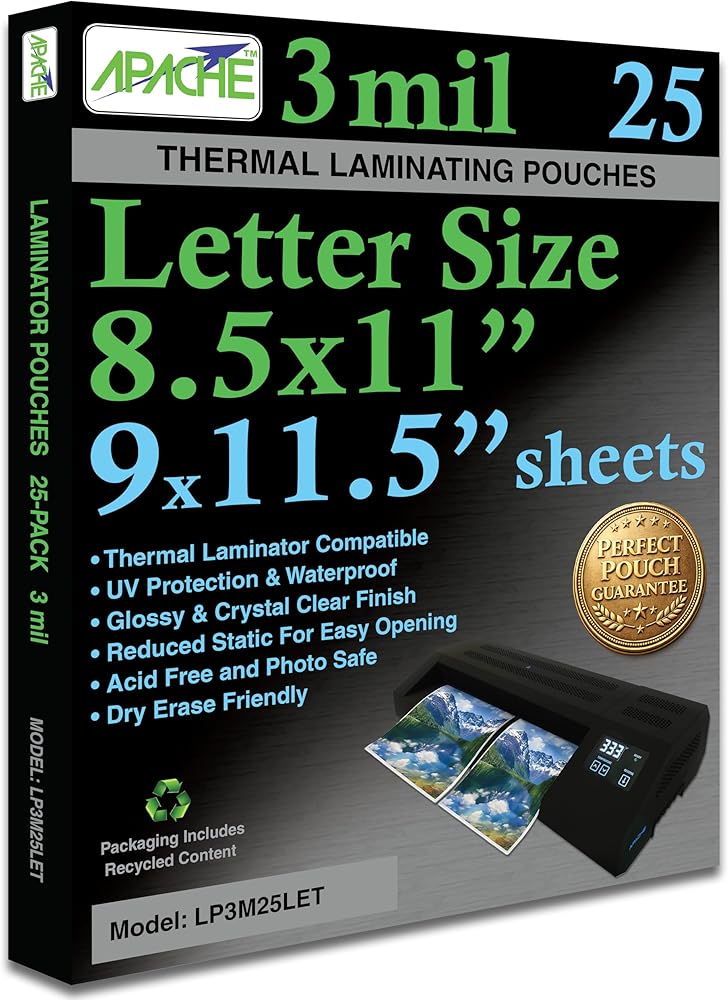 أكياس تغليف أباتشي 3 مل، لورق مقاس 8.5 × 11 بوصة مقاس 9 × 11.5 بوصة، 25 حزمة