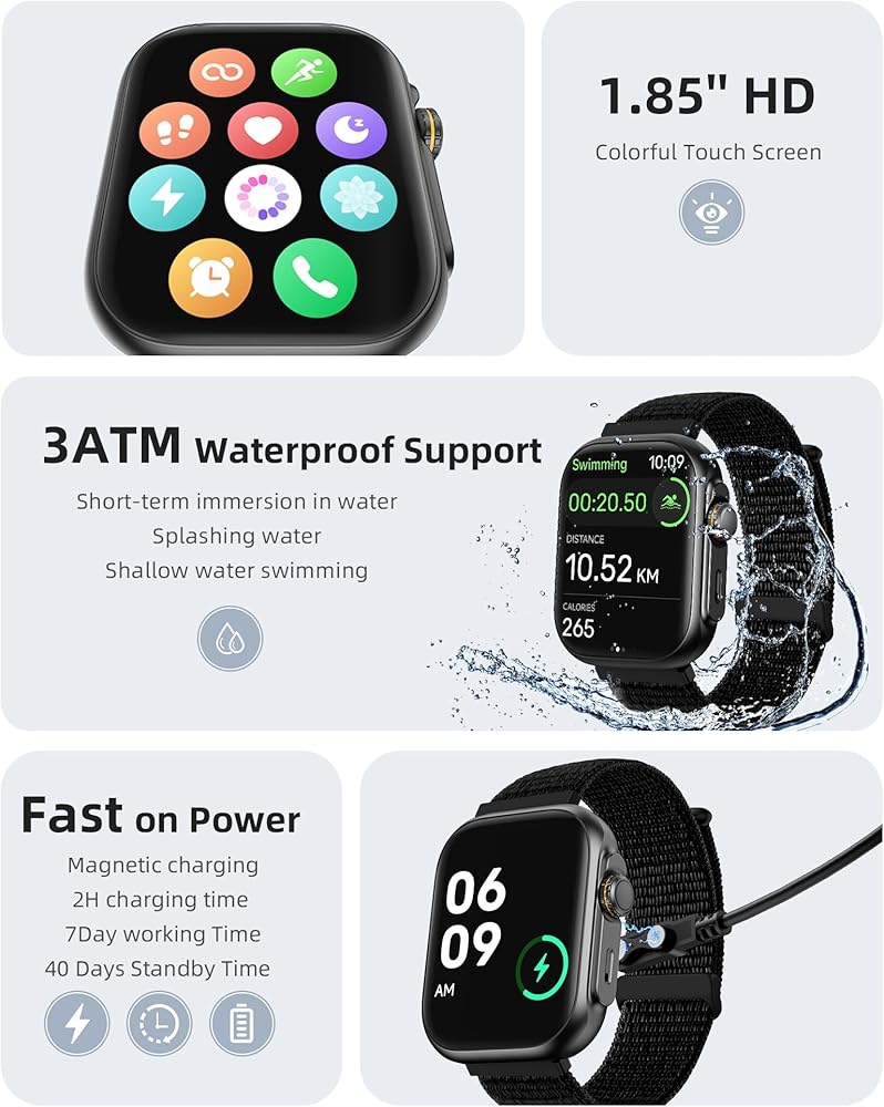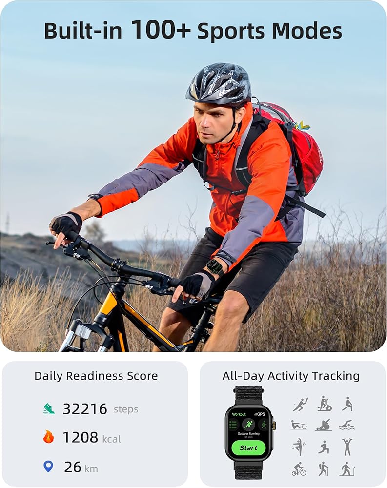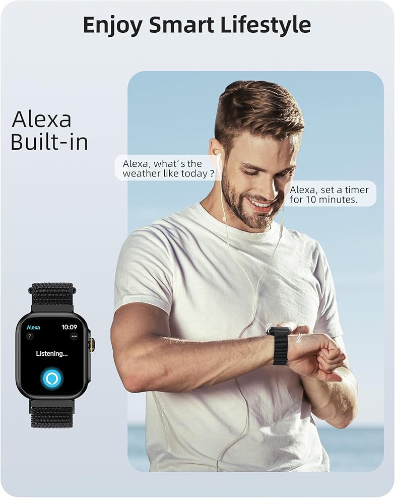 ساعة بارسونفر الذكية، نظام تحديد المواقع العالمي (GPS)، مكالمات بلوتوث، متتبع اللياقة البدنية المقاوم للماء حتى عمق 30 مترًا مع أكثر من 100 وضع رياضي، مراقب معدل ضربات القلب/متتبع النوم، عداد الخطى، أليكسا مدمج، ساعة ذكية 1.85 بوصة لأجهزة Android وiPhone