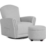 DURABLE & CONVENIENT: This easy-to-assemble and easy-to-maintain Glider is made of plush, cozy fabric and features a smooth 360° swivel motion. It also comes with convenient side pockets.