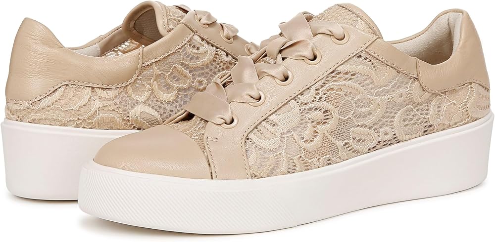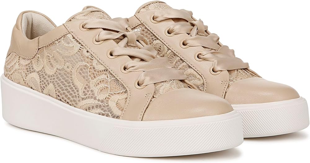 Your not-so-average sneakers: Dress them up for weddings, bridal parties and beyond. Dressy tennis shoes with lace details. Crochet fabric/leather with a closed round toe. Lace-up styling. Contour+ Comfort technology for a premium fit and all-day comfort experience. Removable insole. Padded collar. Non-slip outsole. 1 1/4 inch heel. Consciously packaged: 100% of our shoe boxes are made of 80% recycled paper + soy-based ink. Designed using some environmentally preferred materials. WHY YOU'LL LOVE IT: Forever elegant silhouettes with all day wearability, available in an inclusive range of sizes and widths. Designed to the contours of a woman's foot. The Beautiful Fit. Since 1927.