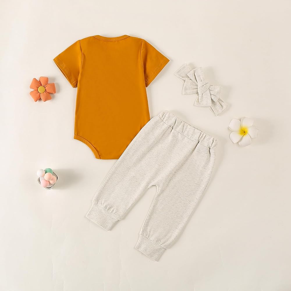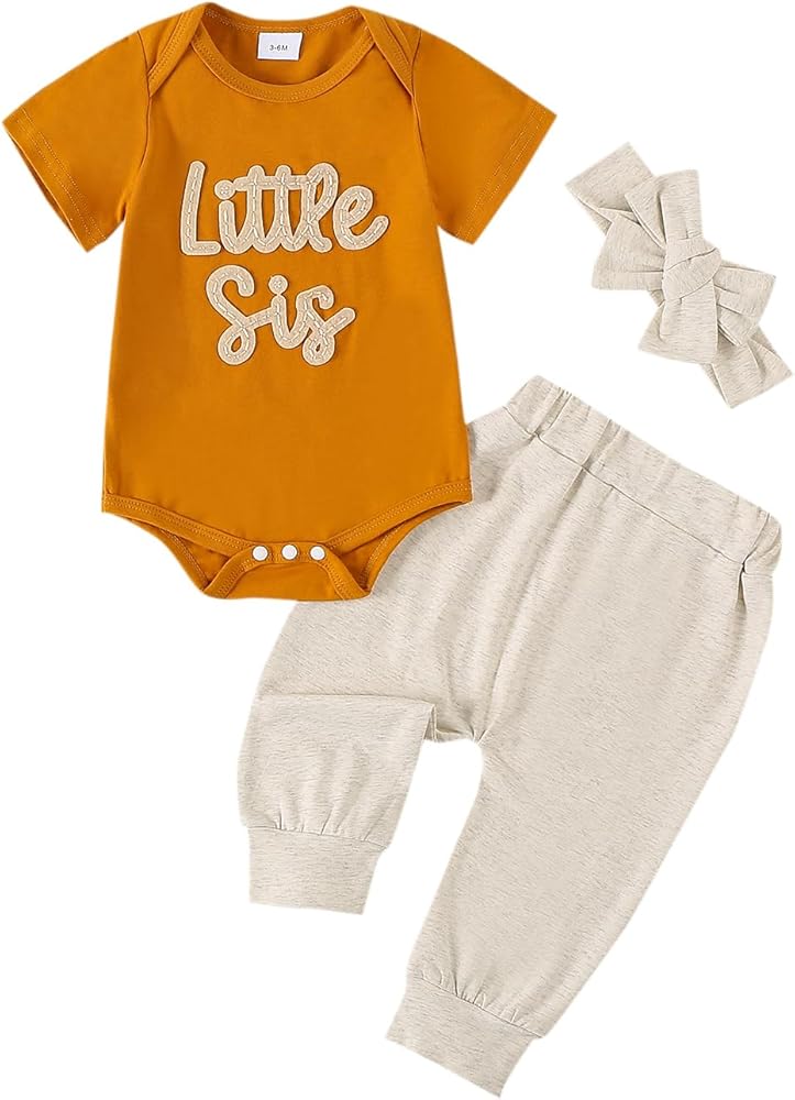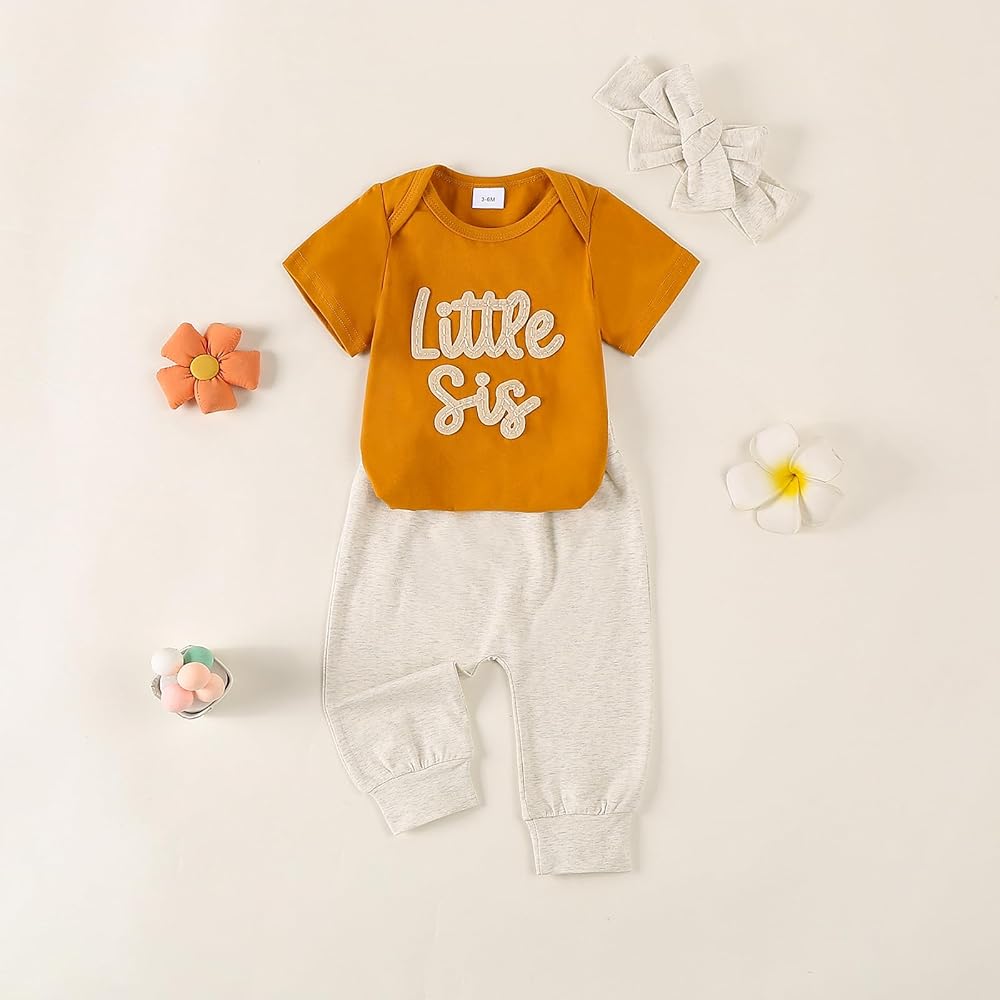Feature: This baby coming home outfit girl is stylish and cute, short sleeve romper, round neck, little sister letter embroidery, snap button easy for changing diapers, solid color pants with headband, perfect newborn going home outfit girl, make your girl more lovely