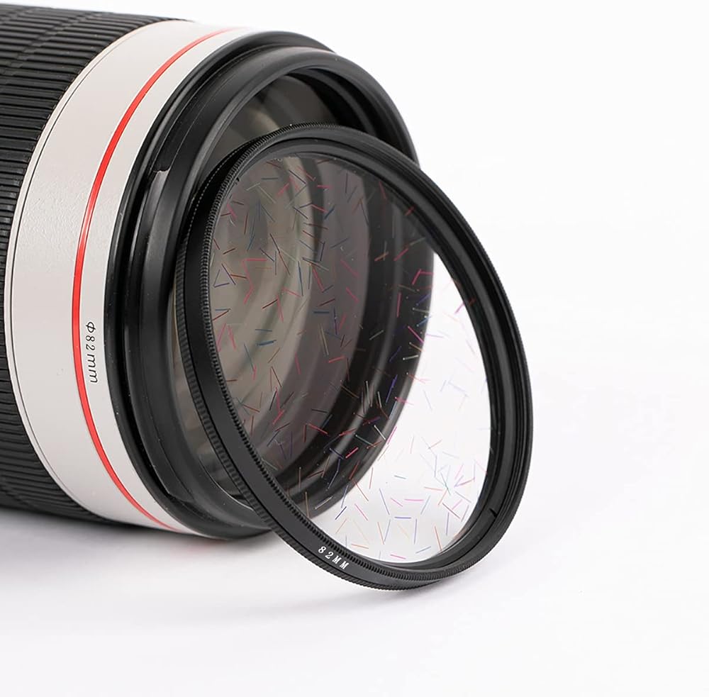 - عدسة مرشحات المؤثرات الخاصة 77 مم و82 مم منشور زجاجي لامع مصقول بضوء النجوم الملون.