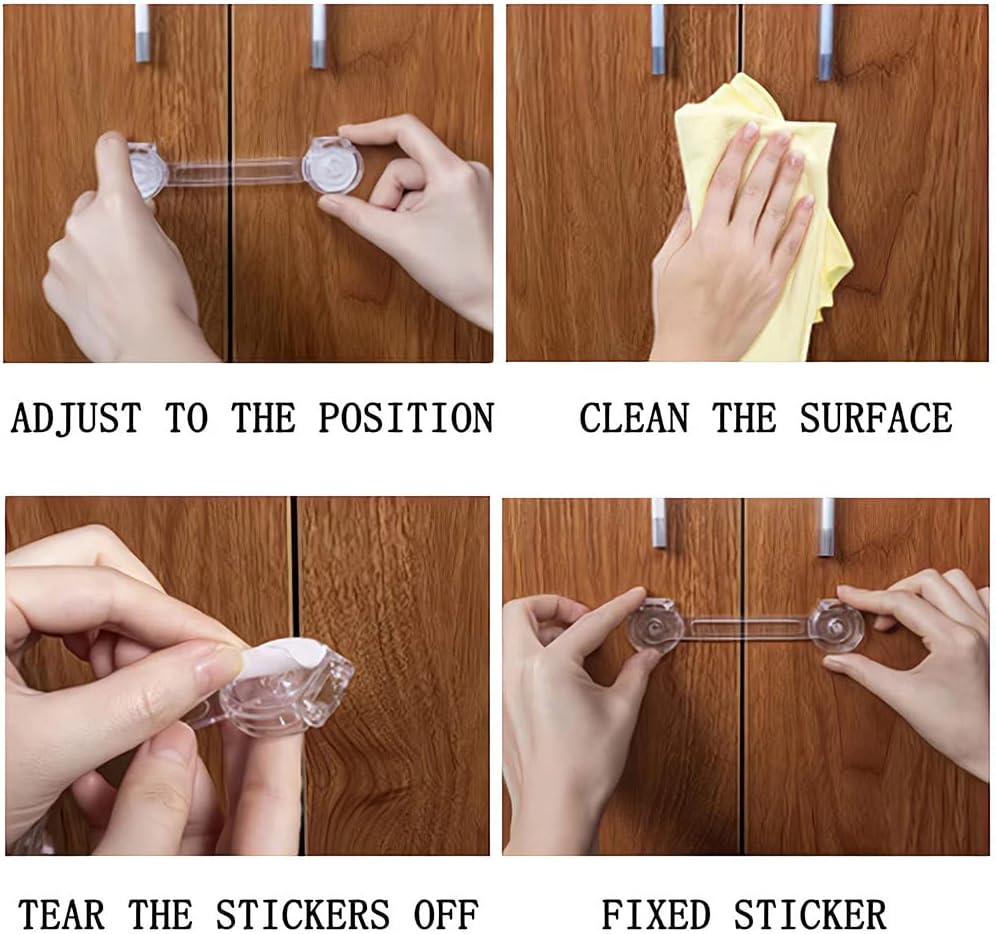 • Easy Installation: Easy to use. Adults can mount the child safety device directly on a dry, nearly smooth surface. Reliable bond strength ensures sealing. Babies cannot open drawers and cabinet doors directly, which can effectively prevent infants and young children from pinching their fingers.