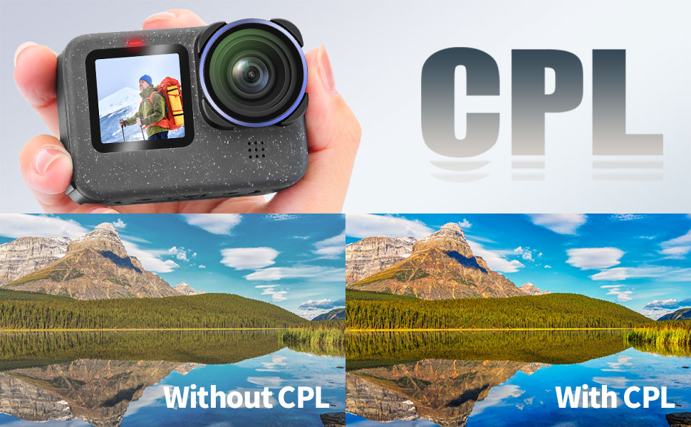 مرشح CPL: مرشح المستقطب الدائري يعزز اللون والتباين. يمكنك ضبط الإضاءة عن طريق ضبط المقياس والتخلص من الانعكاسات غير المعدنية مثل انعكاسات الماء والزجاج، مما يساعد على التقاط صور أكثر وضوحًا وتفصيلاً.