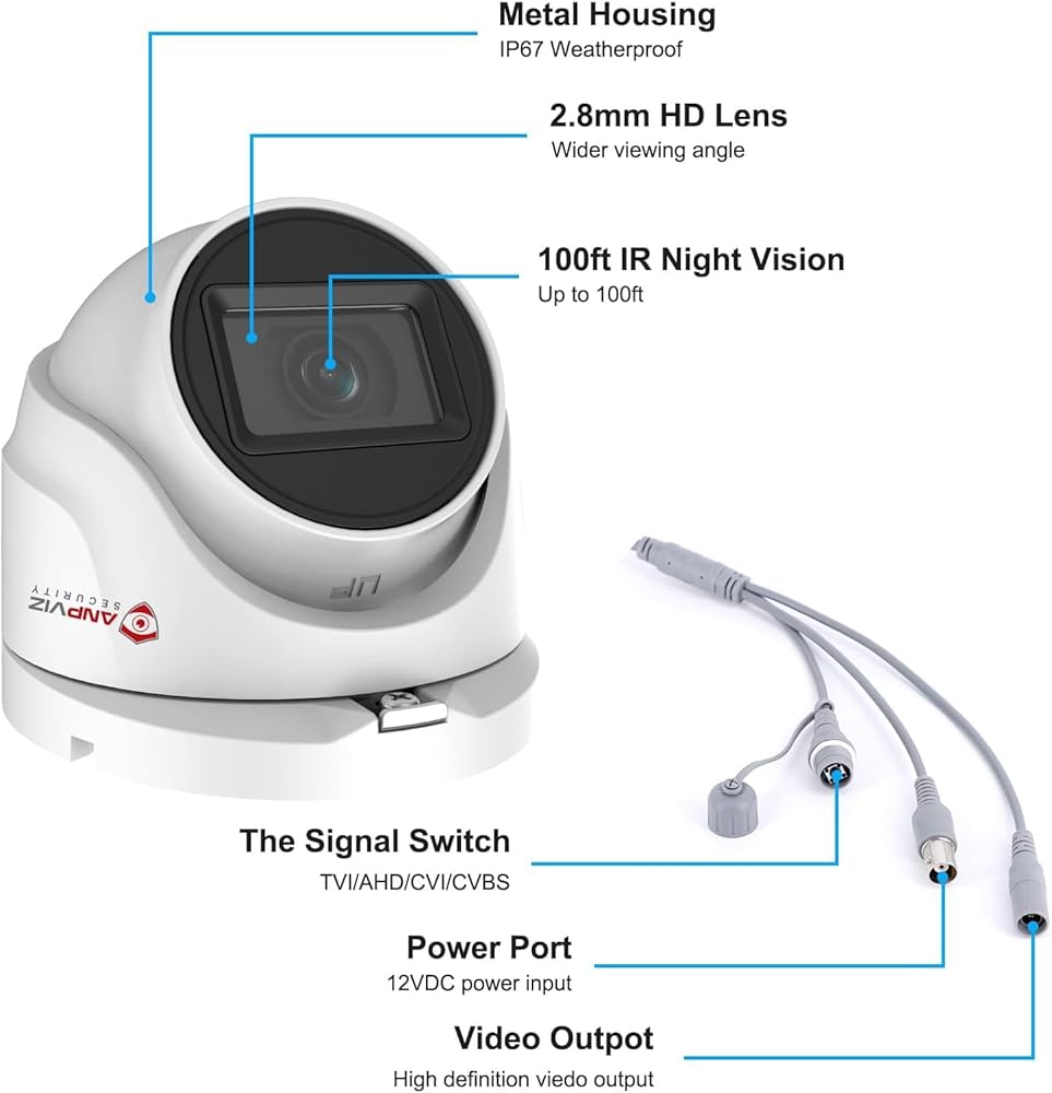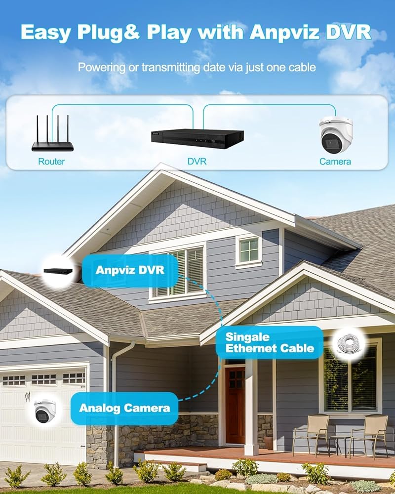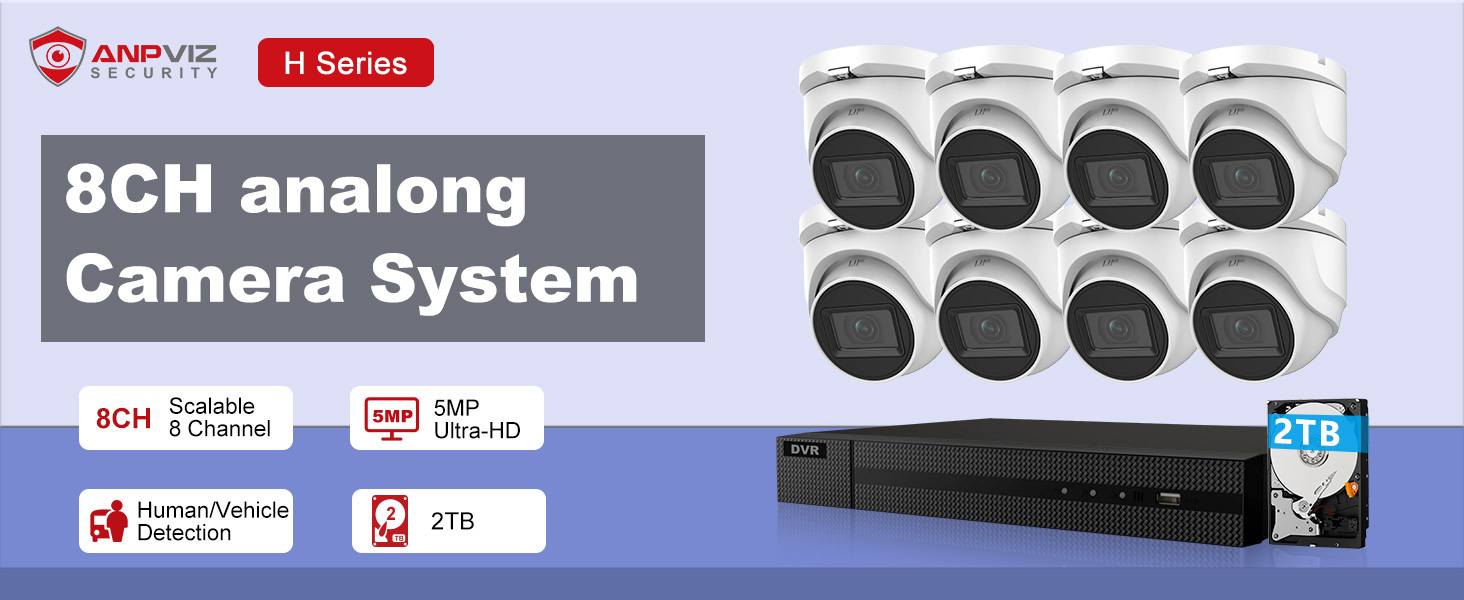 نظام كاميرا أمان Anpviz 8CH CCTV في الهواء الطلق، 8 قطع كاميرات مراقبة تناظرية على شكل قبة 5 ميجابكسل مع اكتشاف الإنسان/المركبة، H.265+ 8 قنوات مراقبة DVR مع محرك أقراص ثابتة 2 تيرابايت، رؤية ليلية 100 قدم