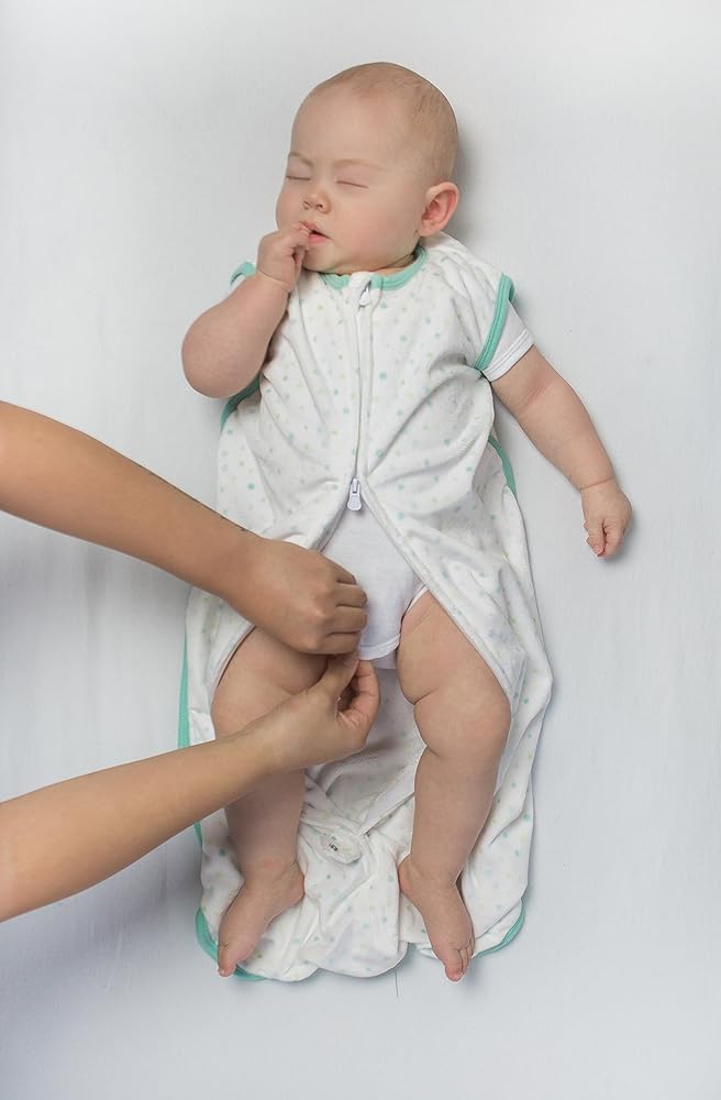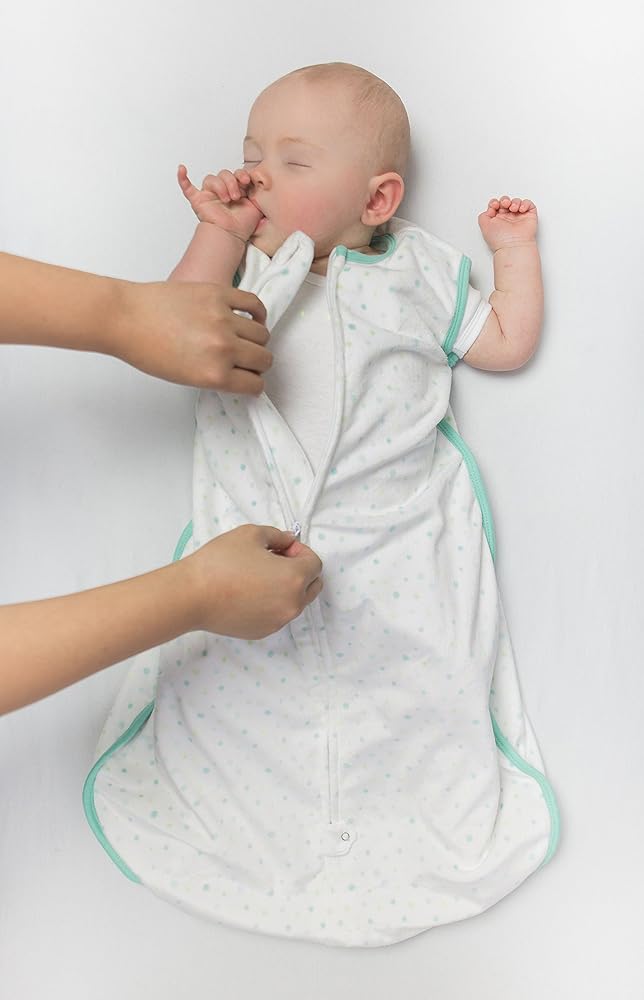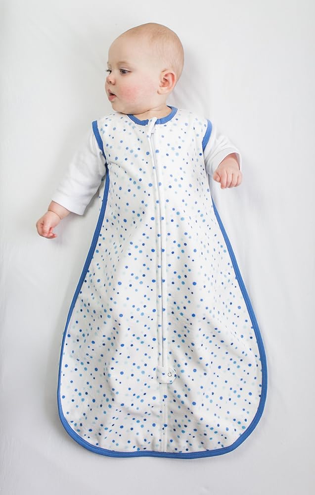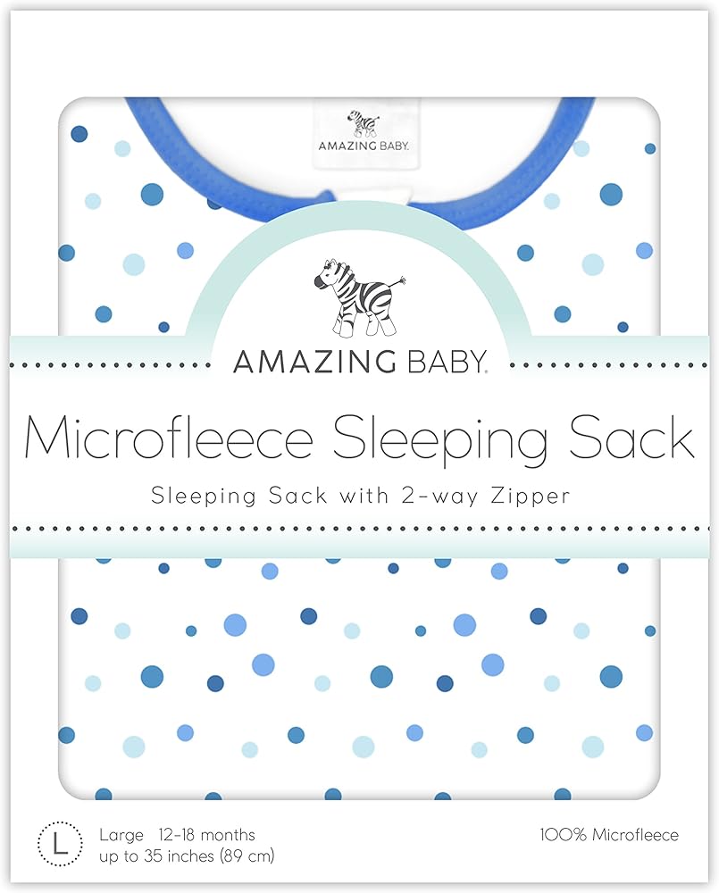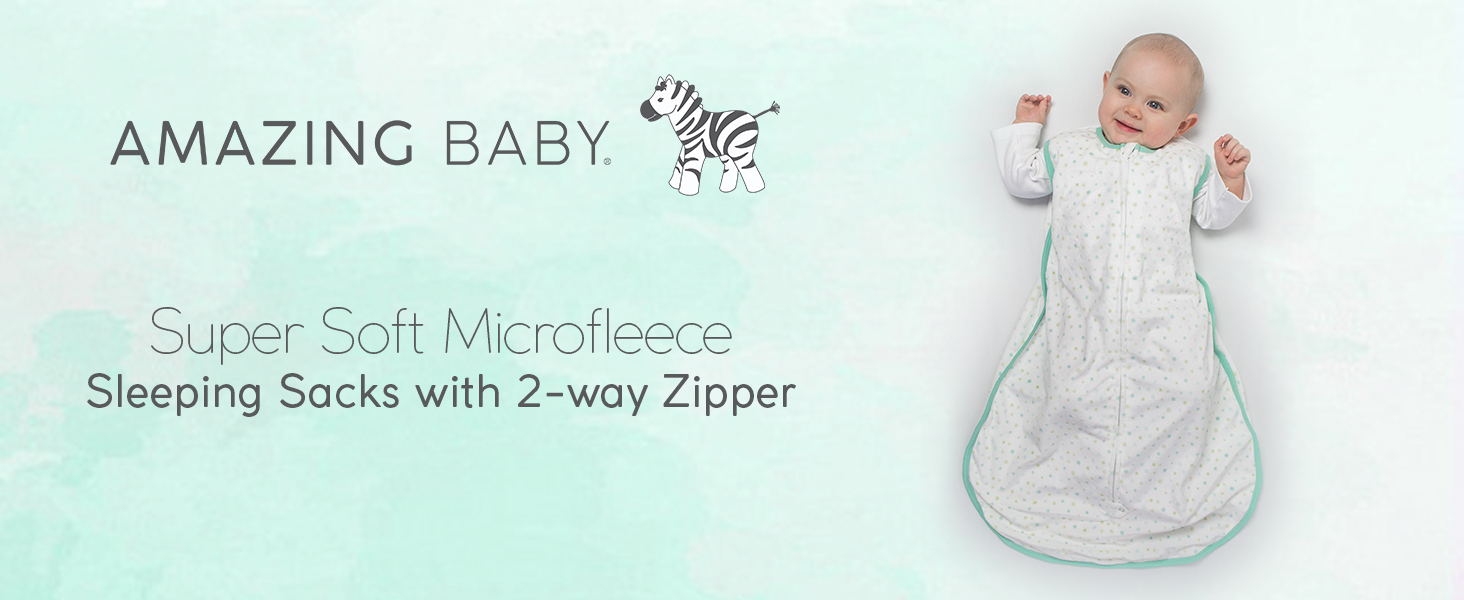 The Amazing Baby sleeping sack surrounds your baby in cozy softness. Our 100% microfleece wearable blanket is perfect when baby is ready to transition from swaddling, replacing loose blankets for safer sleep, so everyone can sleep better. The premium microfleece with cheerful design is incredibly soft and keeps looking great wash after wash. The handy 2-way zipper zips down from the top making it easy to place baby into sack and also zips up from the bottom making diaper changes easy. Machine washable.