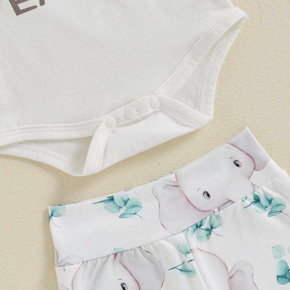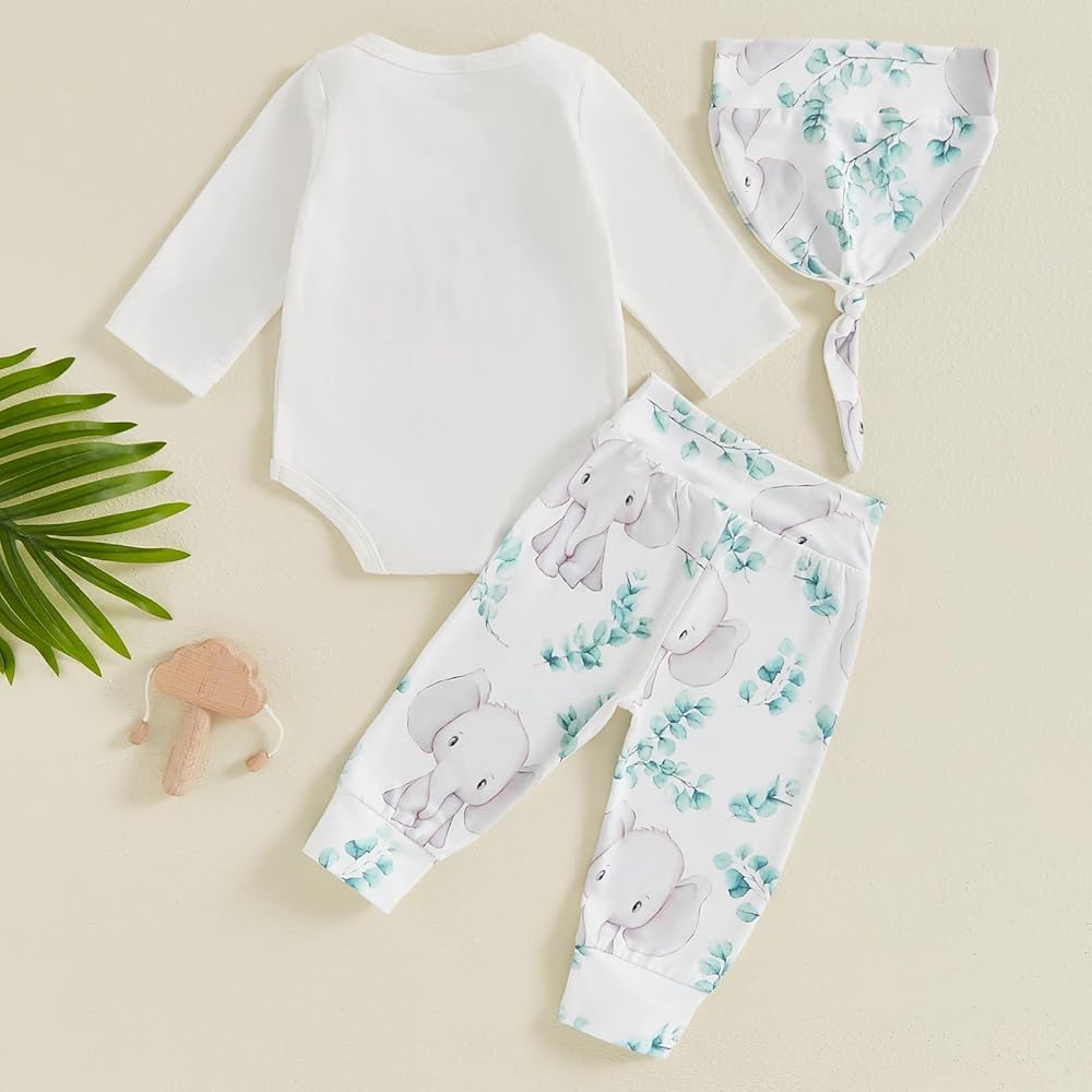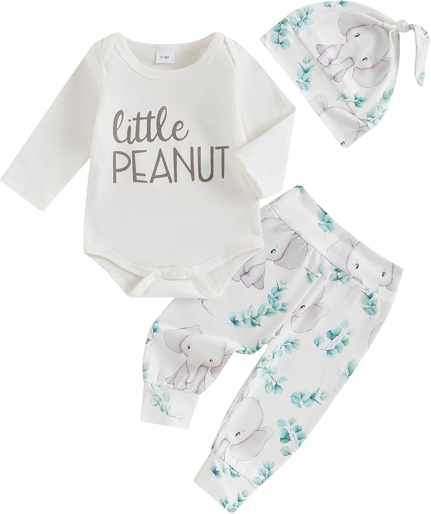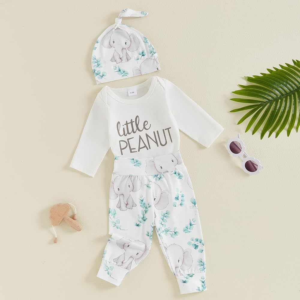 Newborn Boy Clothes Little Peanut Bodysuit Elephant Jogger Pants Hat Cute 3Pcs Gender Neutral Coming Home Outfit