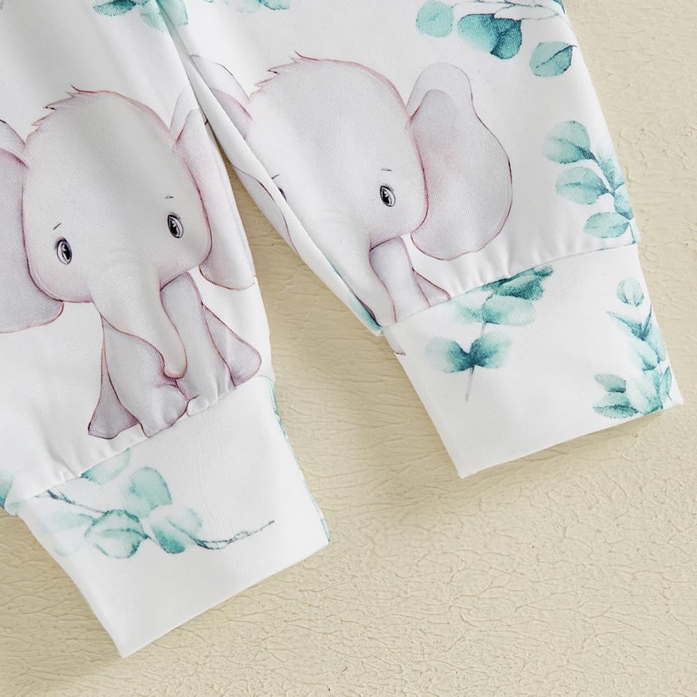 【What You Get】: Gender neutral baby coming home outfit, 1* long sleeve bodysuit, 1* elephant jogger pants, 1* cute knotted hat, great choice for bring baby going home from hospital and photo shoot outfit, welcome new baby coming home.