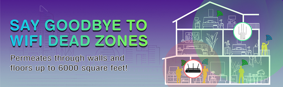 معزز إشارة موسع WiFi يصل إلى 6000 قدم مربع وأكثر من 50 جهازًا، موسع نطاق WiFi، مكرر الإنترنت اللاسلكي، مضخم صوت طويل المدى مع منفذ إيثرنت، نقطة وصول، إعداد مفتاح واحد، متوافق مع Alexa