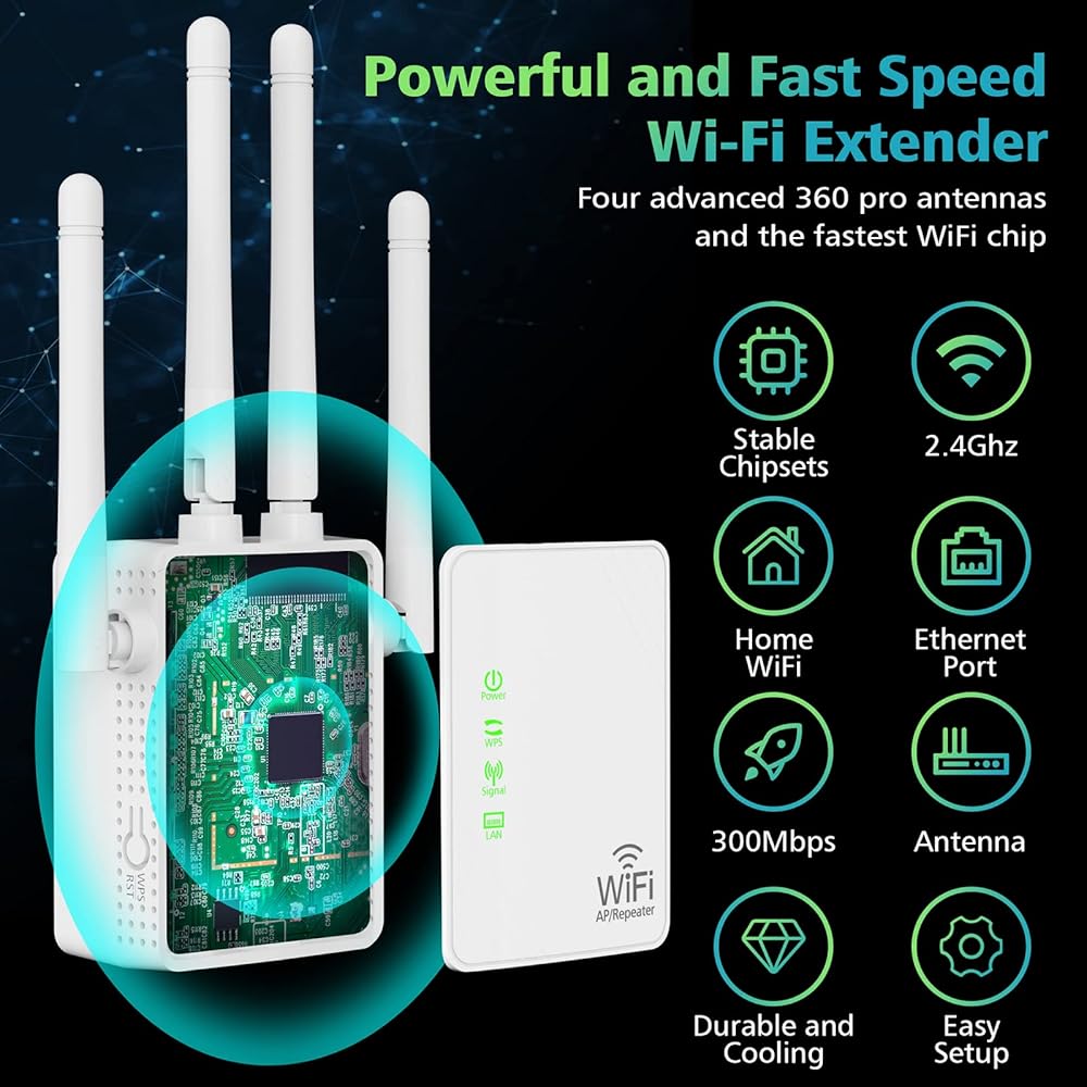 【تغطية إشارة فائقة】تغطية عالية السرعة وعالية النطاق لتعزيز التغطية اللاسلكية في جميع شبكات WLAN، وتوسيع إشارة WiFi إلى المنطقة الميتة، وإنشاء إشارة أقوى مع معدل نقل يصل إلى 300 ميجابت في الثانية. يمكنك ممارسة الألعاب عبر الإنترنت وعقد مؤتمرات الفيديو وحتى تشغيل فيديو عالي الوضوح بدقة 4K في أي وقت وفي أي مكان في المنزل.
