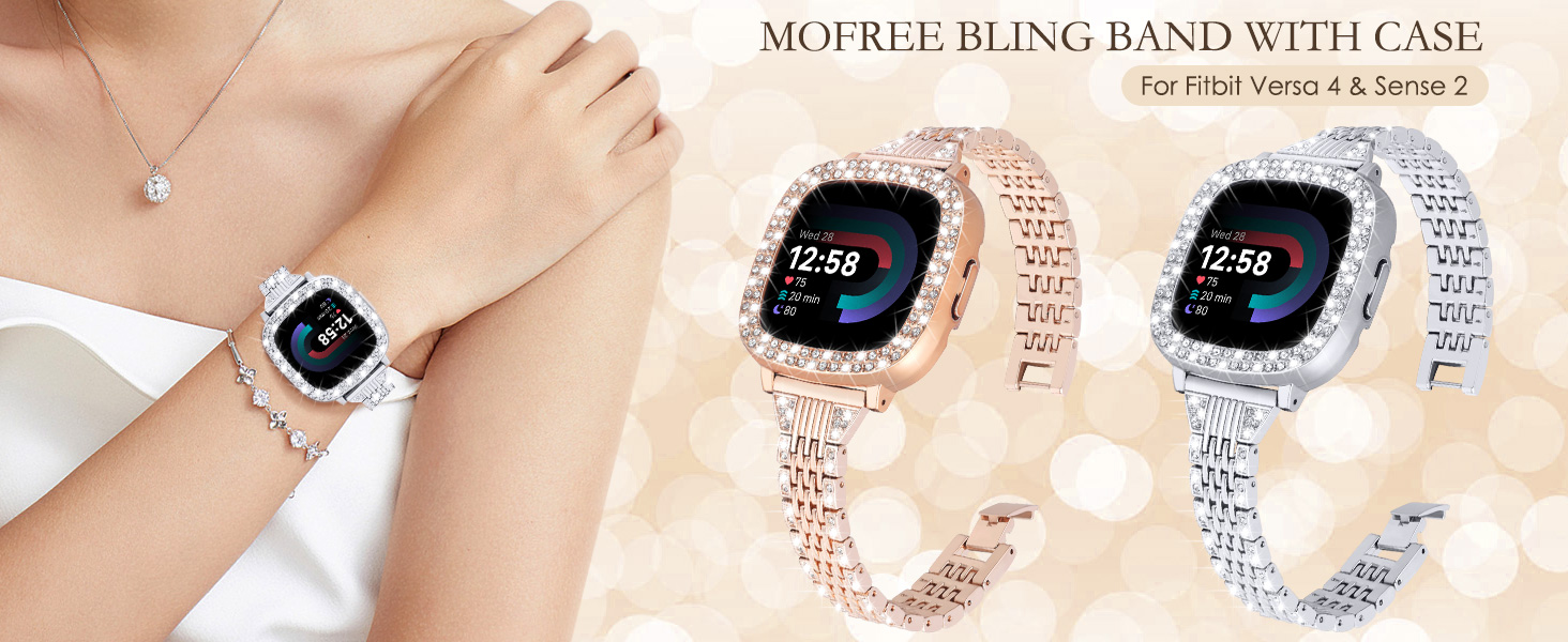 ✿【التوافق: حزام MOFREE اللامع مع الجراب متوافق فقط مع أحزمة Fitbit Versa 4، وFitbit Sense2 للسيدات، يرجى التحقق من طراز Fitbit الخاص بك. (لا يناسب Fitbit Versa 3، وFitbit Sense، وFitbit Versa، وVersa Lite، وVersa SE)