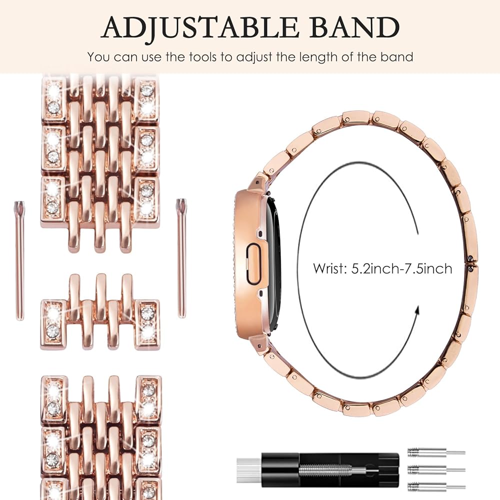 ✿ 【تعديل سهل وسريع】يتناسب هذا الحزام النسائي مع المعصم من 5.2 بوصة إلى 7.5 بوصة (132 مم - 190 مم). يأتي مع أداة إزالة الروابط وتعليمات بسيطة، يمكن إزالة جميع الروابط بسهولة للحصول على المقاس المناسب