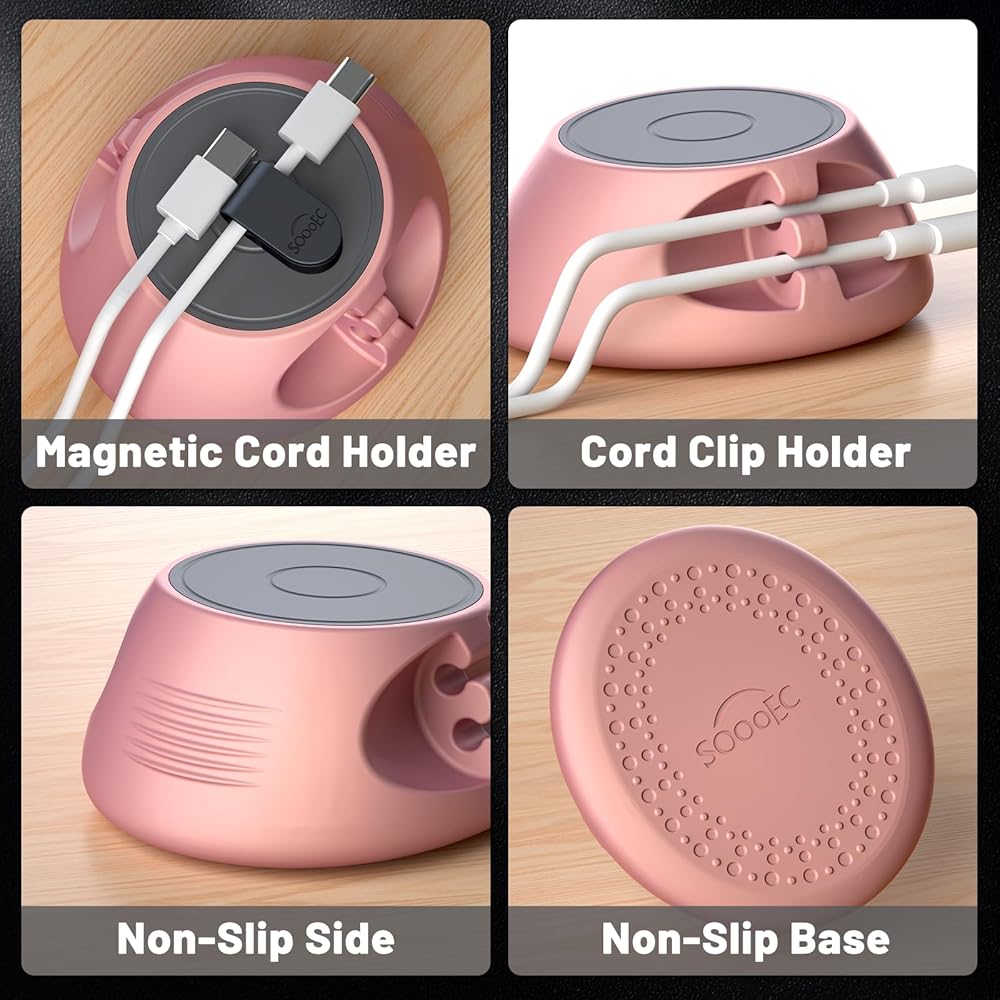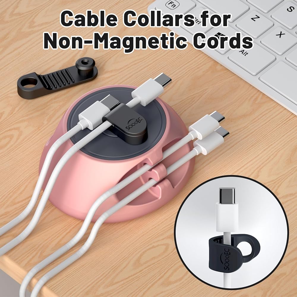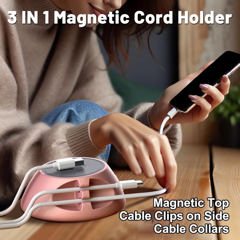 حامل سلك علوي مغناطيسي فائق القوة - مع المغناطيس القوي الموجود على منظم الكابلات، مما يجعله مريحًا للغاية لوضع وإزالة الكابلات بيد واحدة فقط عندما تكون مشغولاً بالعمل أو شحن الهاتف على عجل.