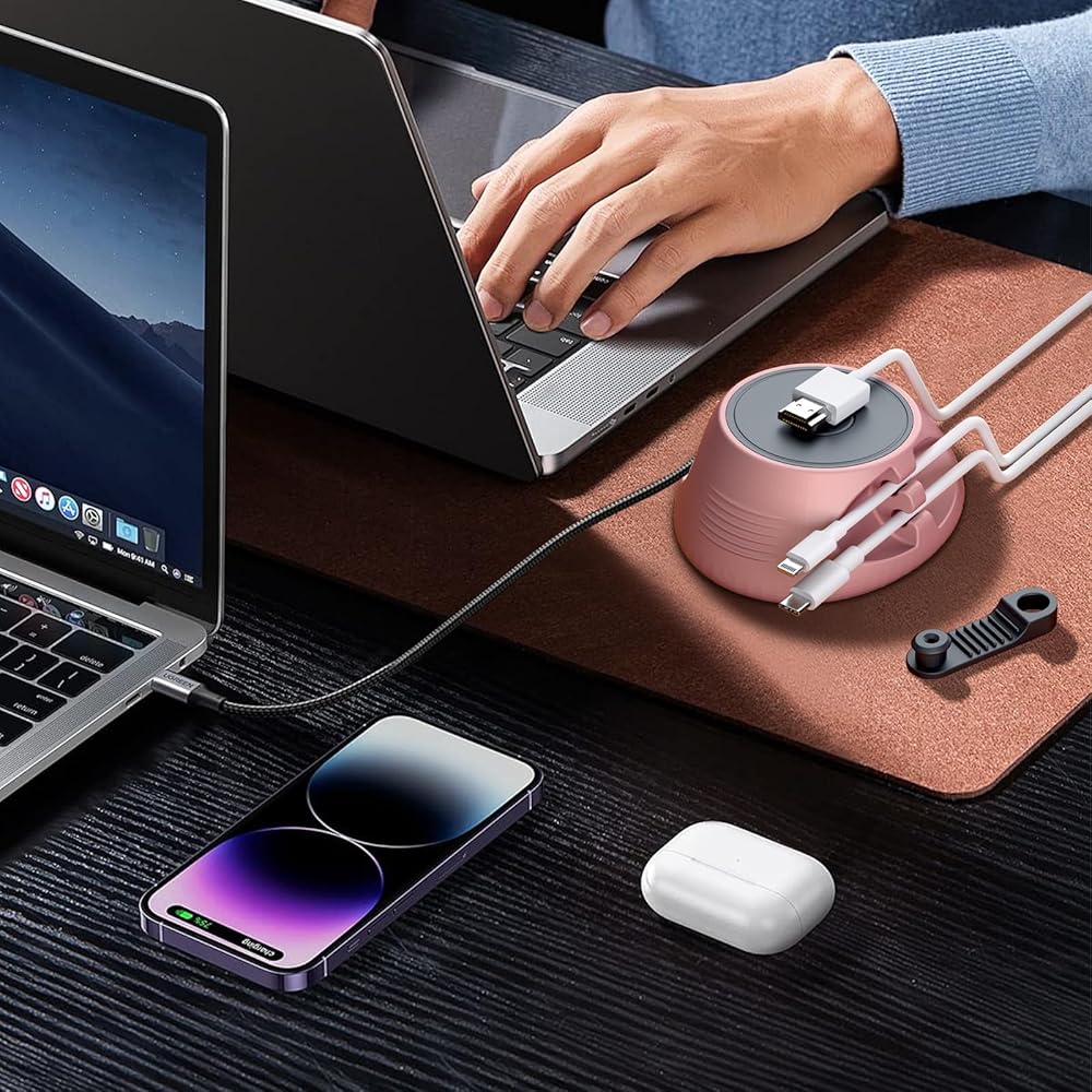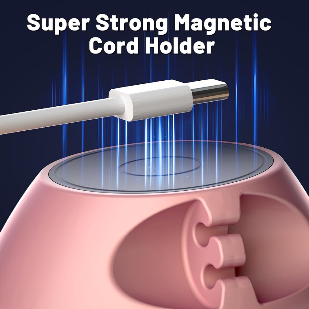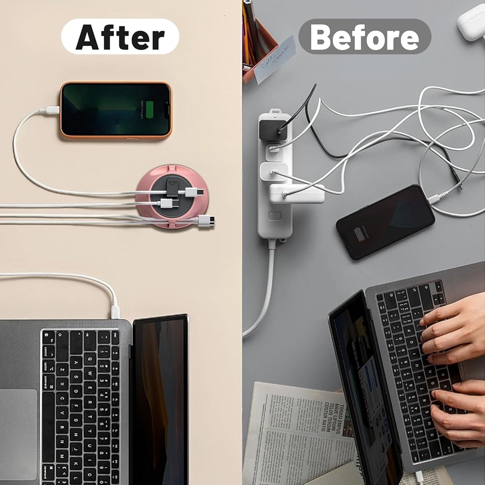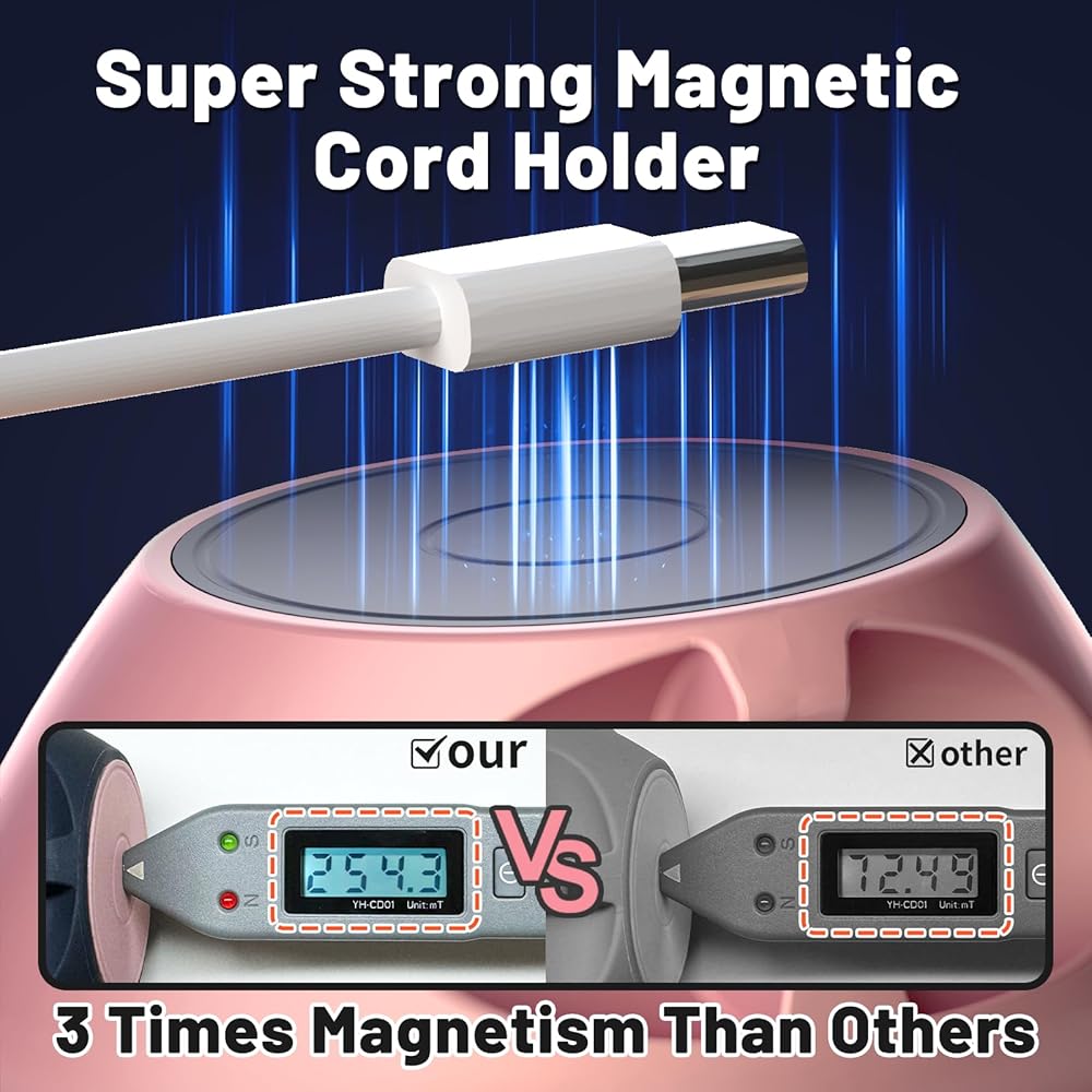 حامل سلك علوي مغناطيسي فائق القوة - مع المغناطيس القوي الموجود على منظم الكابلات، مما يجعله مريحًا للغاية لوضع وإزالة الكابلات بيد واحدة فقط عندما تكون مشغولاً بالعمل أو شحن الهاتف على عجل.