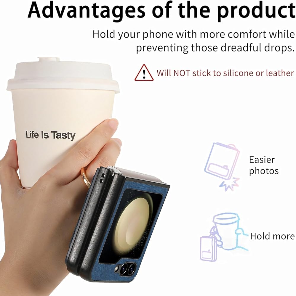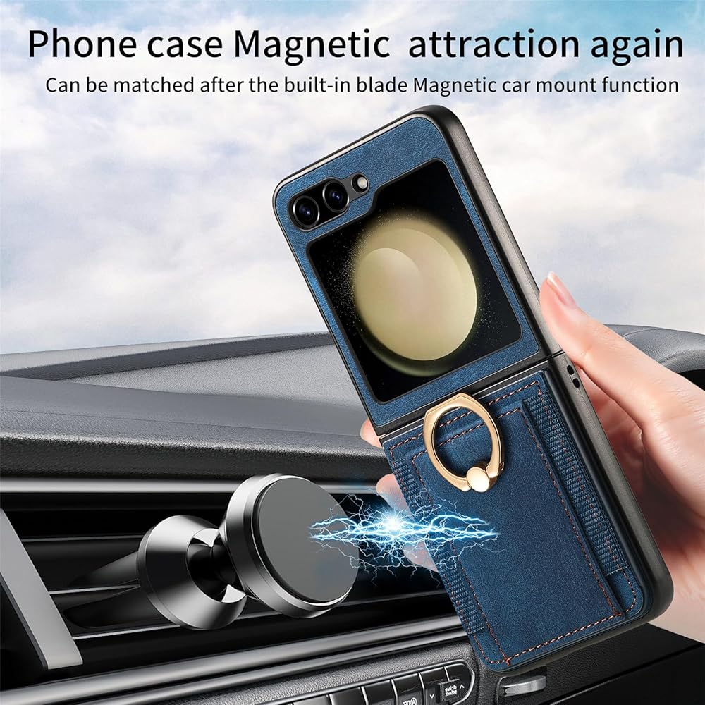 • 5. [مريحة وأنيقة] حافظة هاتف حاملة للبطاقات لهاتف Samsung Galaxy Z Flip 6 ورقة مغناطيسية معدنية مدمجة لامتصاص مستقر، والتي يمكن امتصاصها مباشرة على حامل حامل السيارة المغناطيسي. (لا يشمل حامل حامل السيارة المغناطيسي).ملاحظة : هذه الحالة لا تدعم الشحن اللاسلكي.
