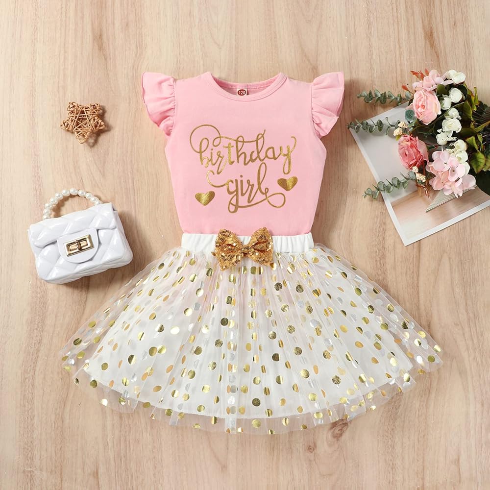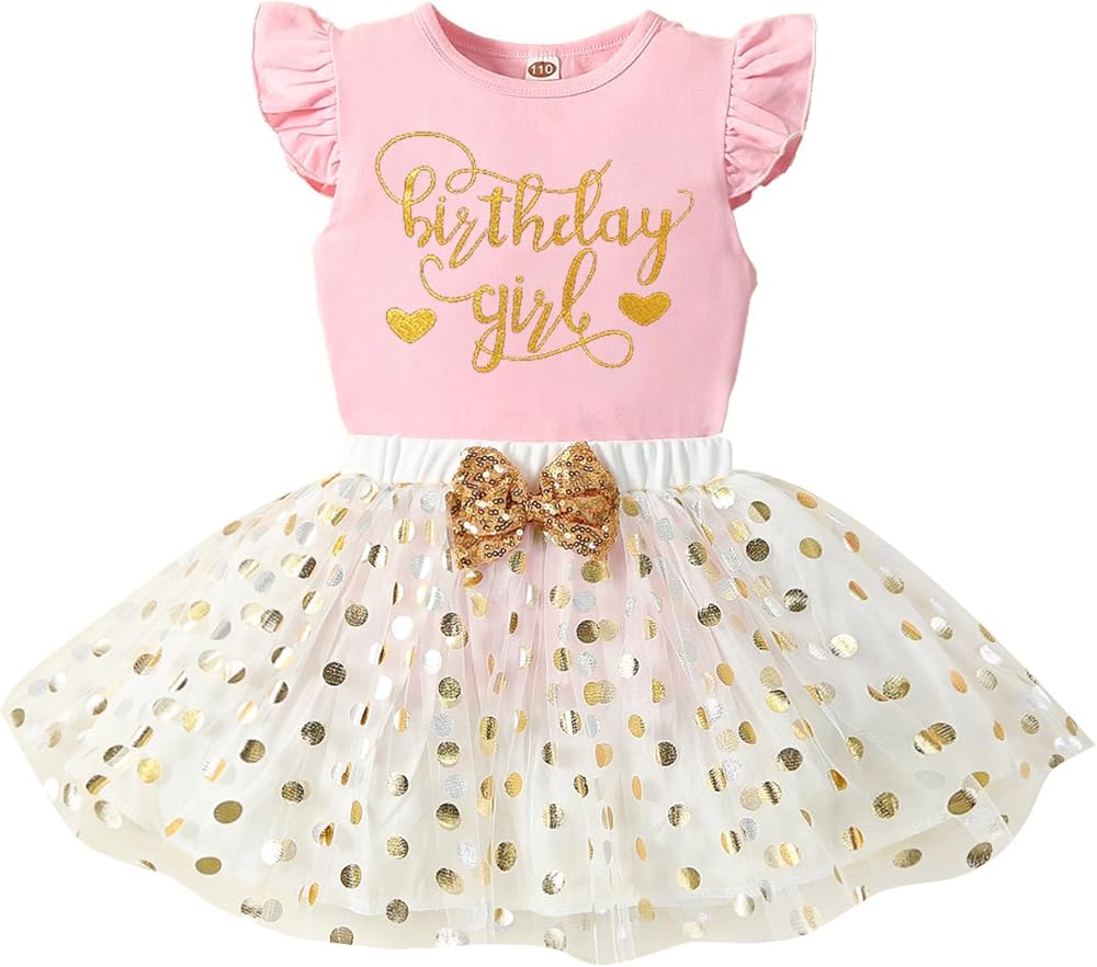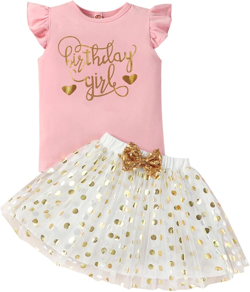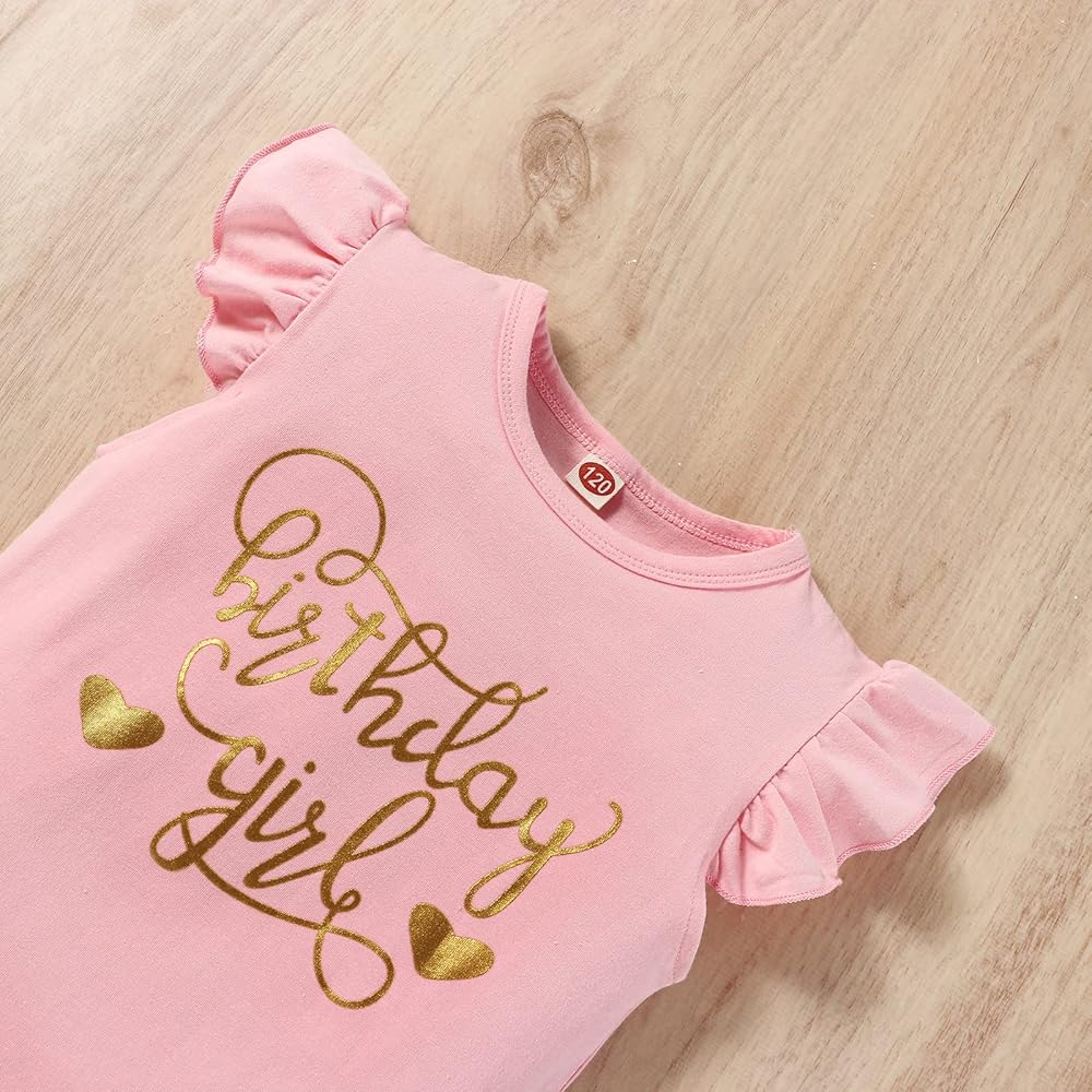 Toddler girl birthday outfit occasion: Adorable babiesrthday princess outfit skirt set suitable for for 1-7 birthday party,3 year old girl birthday outfit for birthday photo sessions, 5 year old girl birthday outfit for photo shoot, birthday dress for 6 year old girl baby shower gifts, daily wear, parties, family gathering, dance, 4 year old birthday outfit girl dress up costume, performance, celebration. take the birthday princess dress for your kid now.