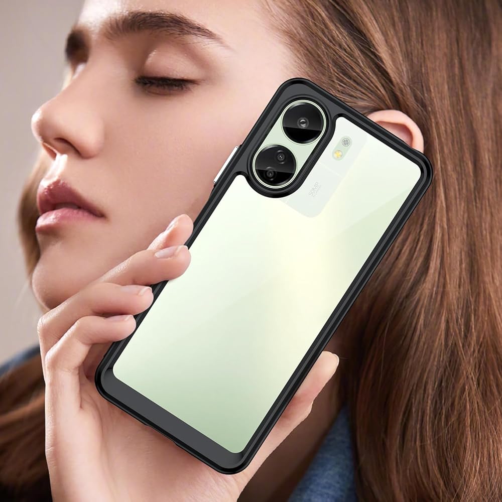 حافظة هاتف Redmi 13C/ 4/5G /POCO C65، مع حماية خفيفة الوزن وعالية الشفافية لامتصاص الصدمات، مادة TPU لملمس مريح، وكاميرا شاشة لحماية عالية، (أسود)
