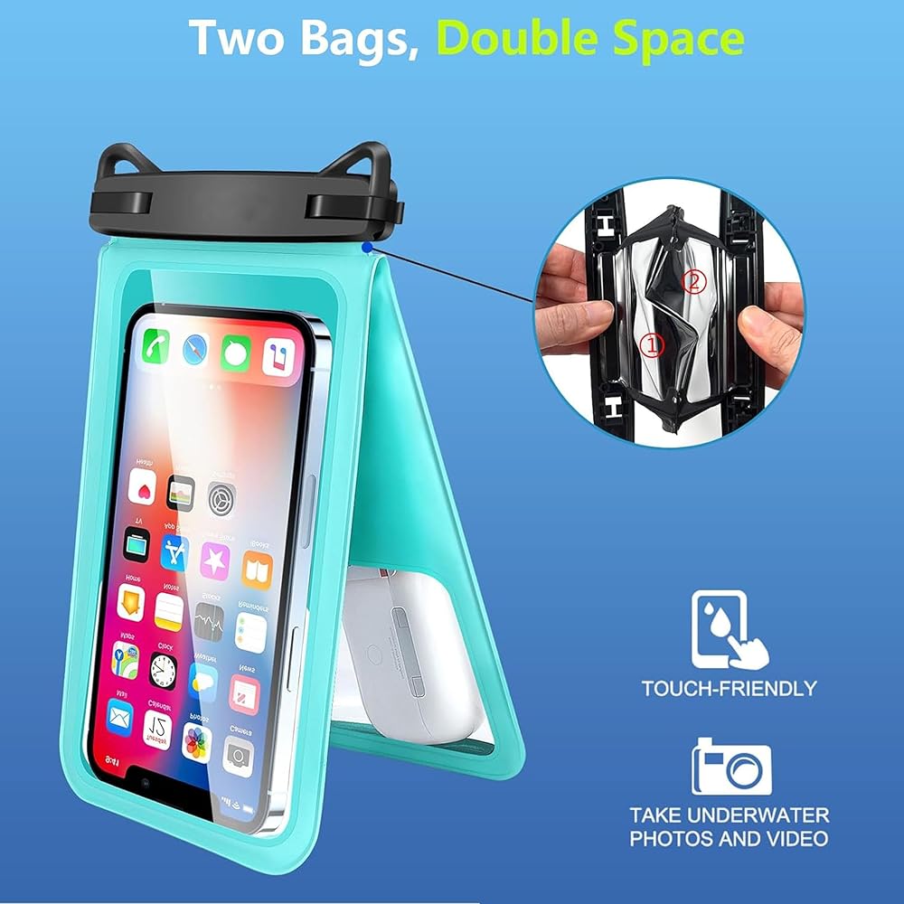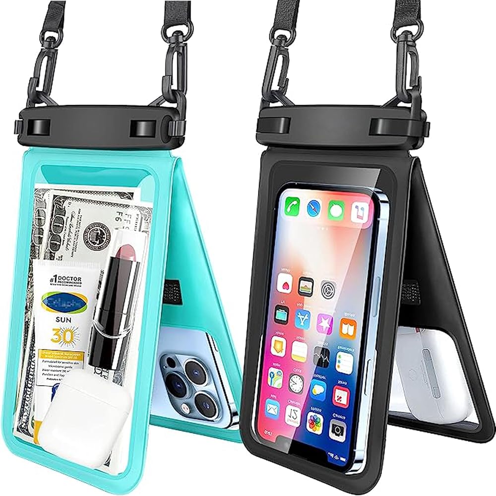 جراب هاتف مزدوج مقاوم للماء، جراب هاتف مقاوم للماء مع iPhone 15/14/13/12 Pro Max/Pro/8 Plus، Samsung Galaxy S24 S23 S22/S21/S20/S10/Note 20/10/9 حتى 7 بوصات حقيبة جافة للعطلات - قطعتان
