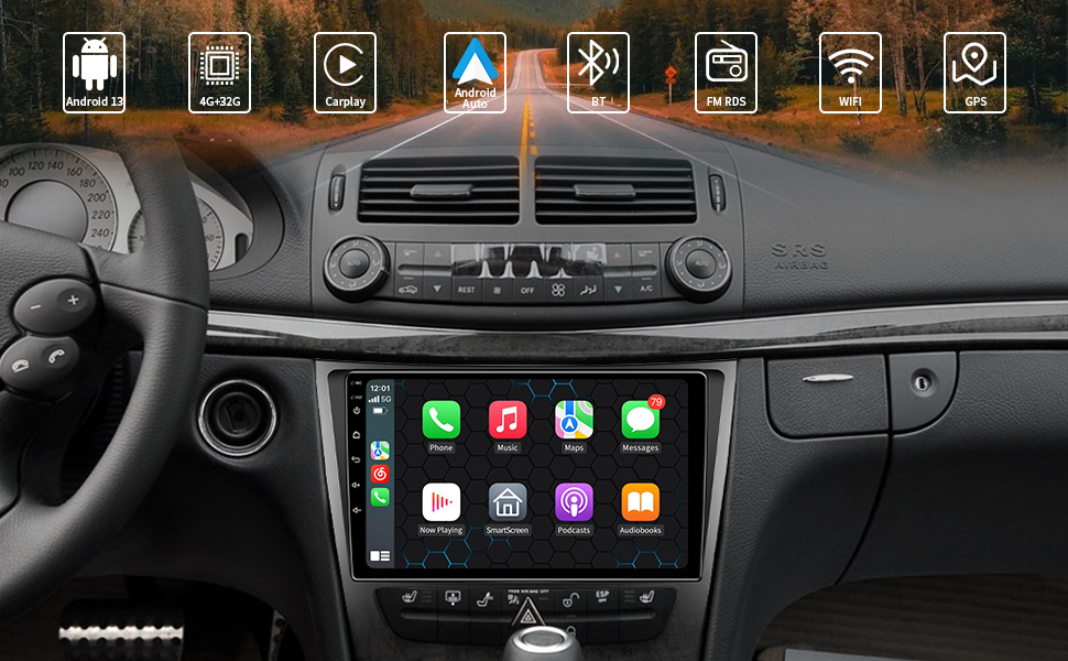 راديو سيارة 4 جيجابايت + 32 جيجابايت 5GWIFI لسيارة Mercedes Benz E Class W211 E200 CLS W219 2002-2009، شاشة لمس 9 بوصات Android 13 مع Carplay لاسلكي Android Auto Bluetooth WiFi FM RDS GPS Mirror Link
