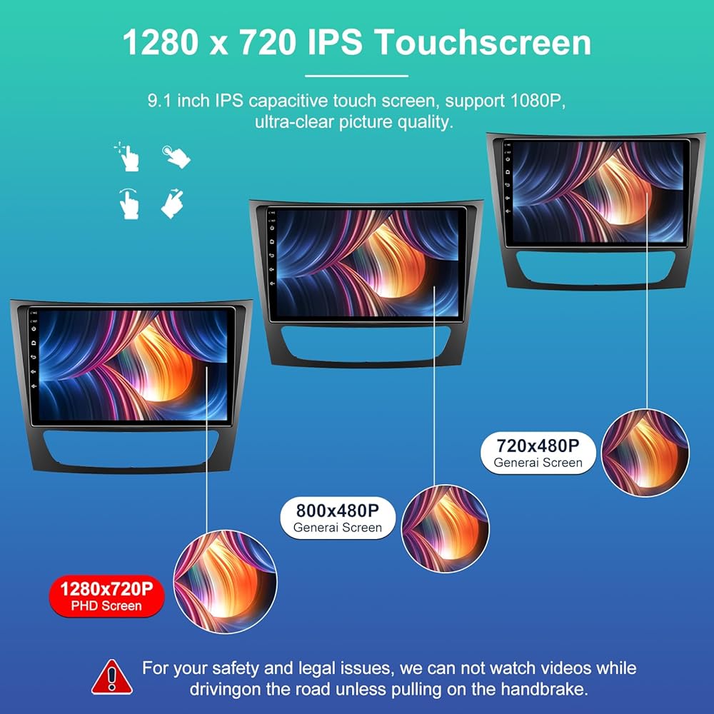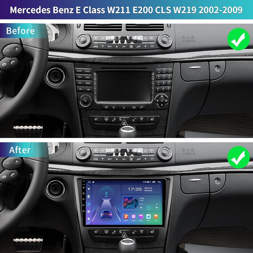 【𝑫𝒐𝒆𝒔 𝒊𝒕 𝒇𝒊𝒕 𝒎𝒚 𝒎𝒐𝒅𝒆𝒍?】ترقية راديو السيارة لمرسيدس بنز E Class (2002-2009) W211 / E200 / E211 / E220 / E240 / E270 / E280 / E300 / E320 / E350 / E430 / E500 / E55AMG / E550 / E63AMG; فئة جي W463 (2001-2008); كلك كلاس W209 (2005-2006)؛ فئة CLS W219 (2001-2011). التوصيل والتشغيل، سهل التركيب. 𝐍𝐨𝐭𝐞: إذا كانت سيارتك تحتوي على مضخم صوت أصلي للسيارة من المصنع، فيرجى الاتصال بنا قبل الشراء.