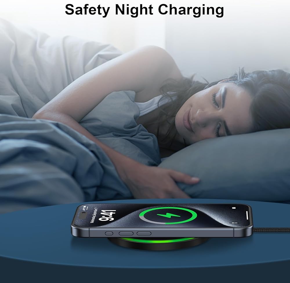 حامل شاحن لاسلكي سريع مزود بمؤشر ضوئي ذكي: يتيح لك مؤشر LED التحقق بسهولة من حالة شحن جهازك، ولا يزعج الشحن الصامت ومؤشر الضوء الناعم راحتك، مع الشحن اللاسلكي الذي يسمح بحياة أقل قلقًا. تم تصميم لوحة الشحن اللاسلكية المتوافقة هذه للعمل مع معظم حافظات الهواتف ومقابض يصل سمكها إلى 5 مم. يمكنك بسهولة شحن هاتف موتورولا وهاتف سامسونج الخاص بك دون الحاجة إلى إزالة الجراب.