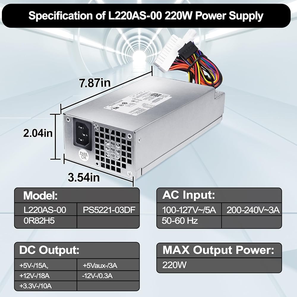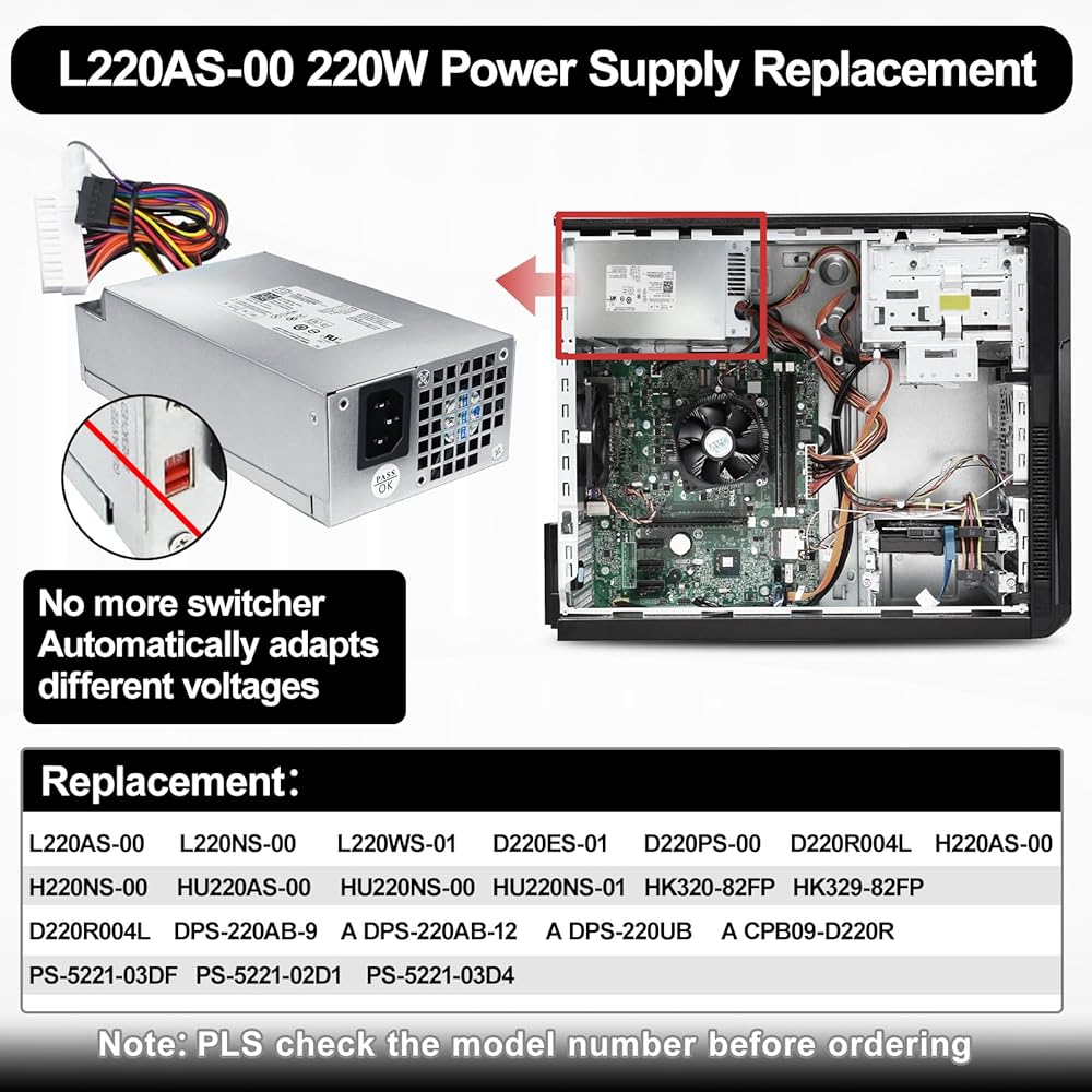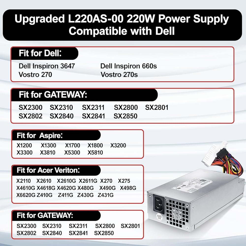 مصدر طاقة LXun L220AS-00 220 واط متوافق مع Dell Inspiron 3647 660s Vostro 270 Acer Aspire X1420 X3400 X1200 eMachines L1200 L1210 L1300 Gateway SX2300 Series PS-5221-03DF 650WP P3JW1 R82HS