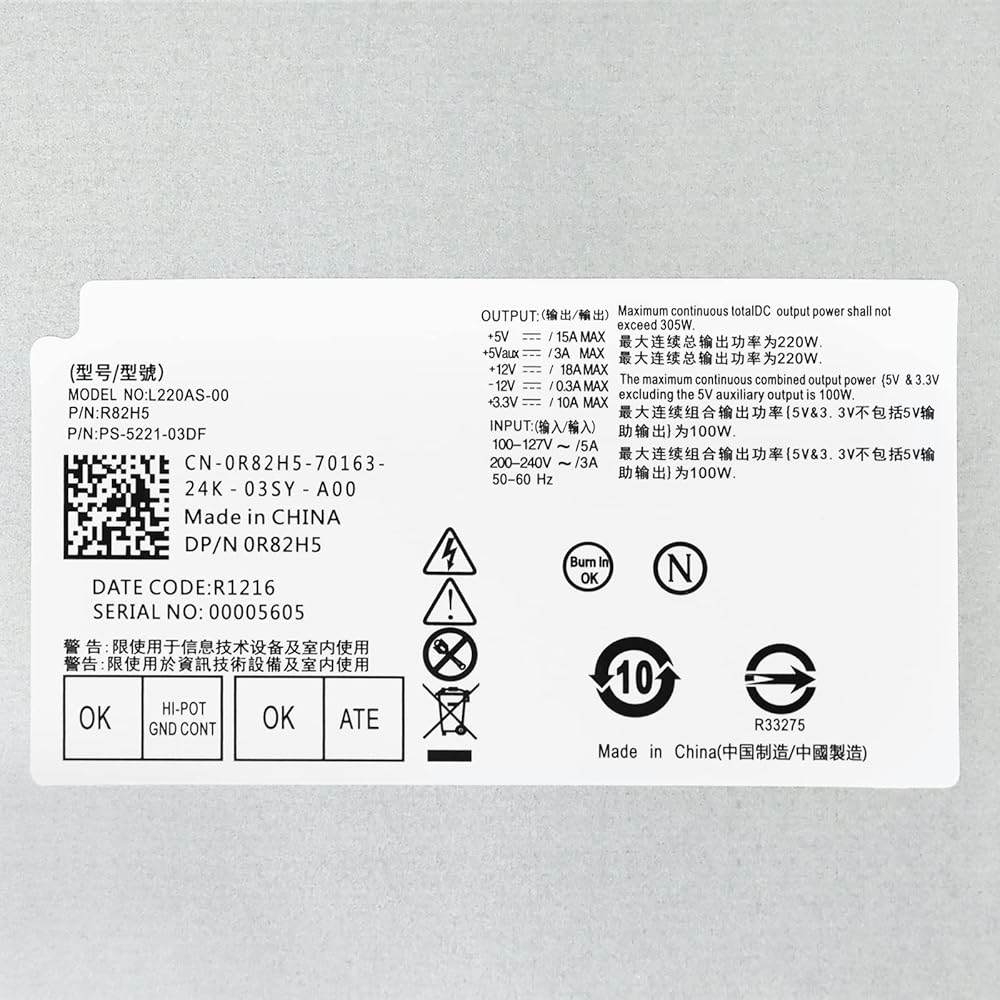 【رقم الجزء المتوافق】 PS-5221-03DF PS-5221-02D1 PS-5221-03D4 R82HS R82H5 R5RV4 RTTPJ FXV31 M32H8 P3JW1 TTXYJ 4C9X9 5NV0T 650WP 6XYV0 89XW5 96MTV