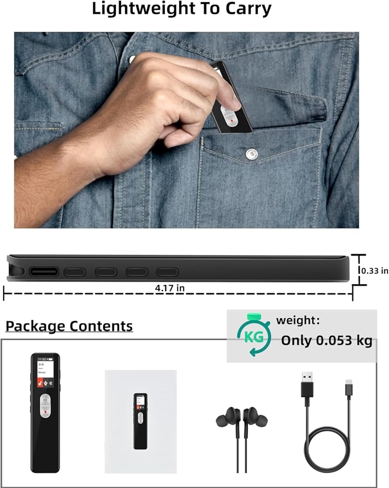 【استخدام متعدد الأغراض】يعد مسجل الصوت الرقمي مثاليًا لتسجيل المعلومات المهمة وإكمال المهام بكفاءة. إنه أيضًا جهاز ممتاز للاستمتاع بالموسيقى أثناء وقت فراغك. يمكنك استخدامه للمحاضرات والاجتماعات والمقابلات والخطب والفصول الدراسية.